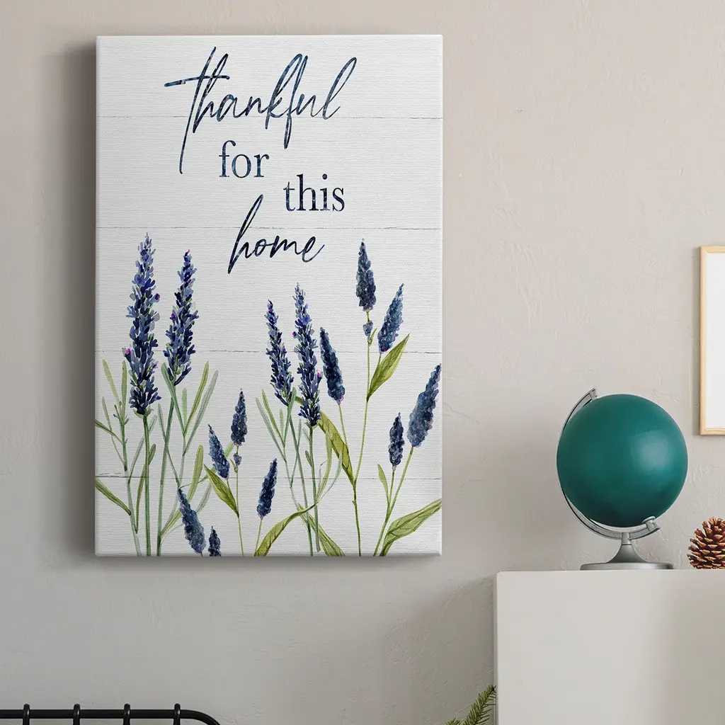 Thankful for this Home Premium Gallery Wrapped Canvas - Ready to Hang A premium hand stretched gallery wrapped canvas print created to last. Featuring a beveled a solid wood stretcher bar, each piece comes ready to hand 6 SIZES AVAILABLE 8''X12'' - Overall Size 12''X18'' - Overall Size 18''X27'' - Overall Size 24''x36'' - Overall Size 32''x48'' - Overall Size 40''x60'' - Overall Size Each piece is made to order. Built to Last Each piece comes ready to hang Solid wood stretcher Fade and Water resistant Made domestically