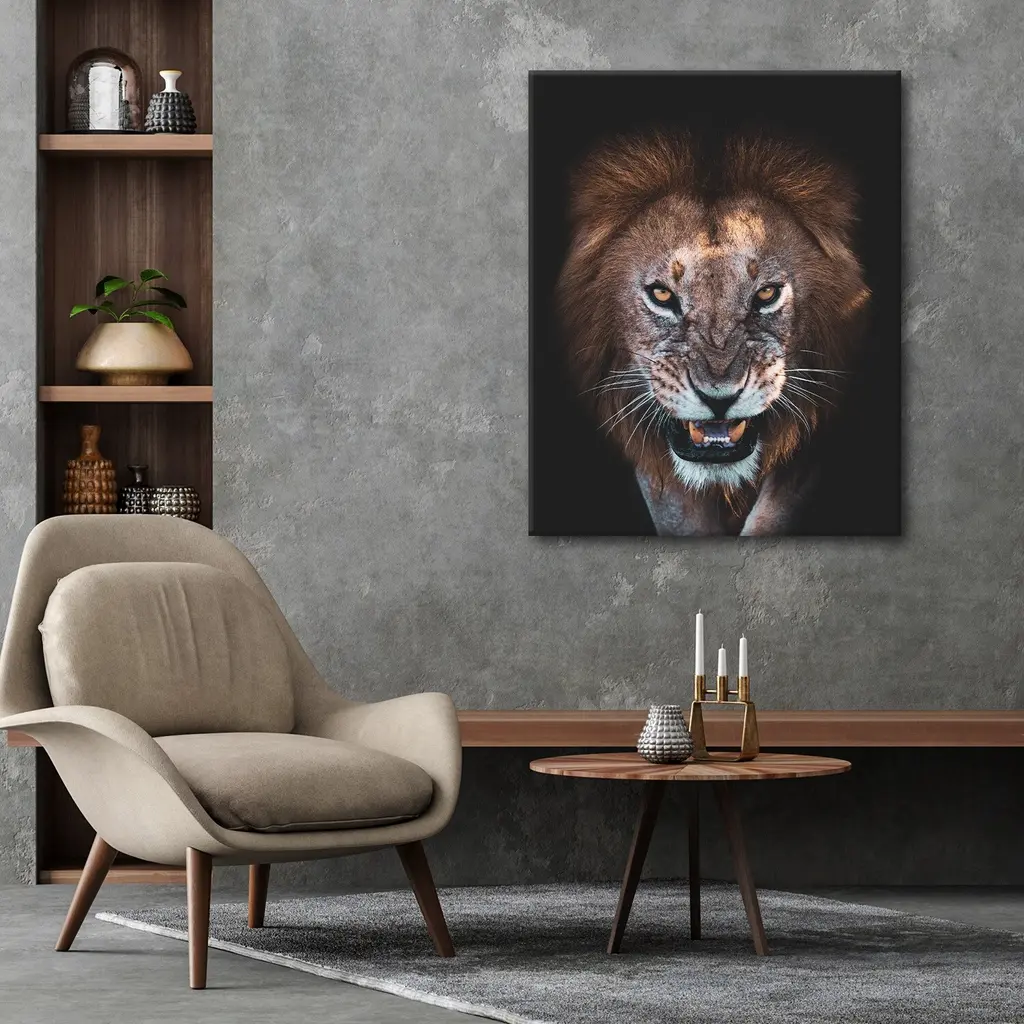 Infuse your space with the essence of this beautifully captured photography titled "The Angry Face" by Faisal ALnomas. The photography print features a ferocious lion with a neutral black background that will add a touch of nature to enrich any modern space. Designed and handcrafted in Chattanooga, Tennessee by Ready2HangArt, using eco-friendly practices. This piece arrives with hardware included and ready-to-hang on your wall for simple installation.