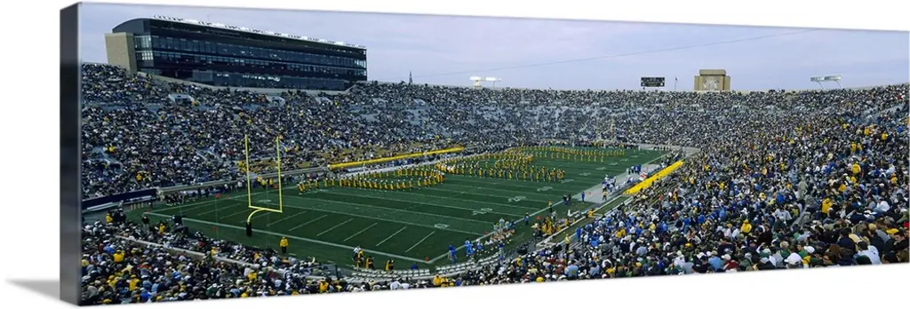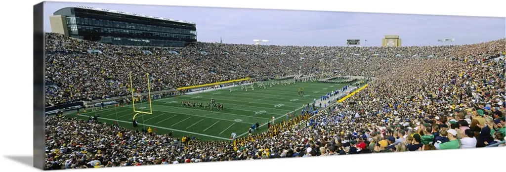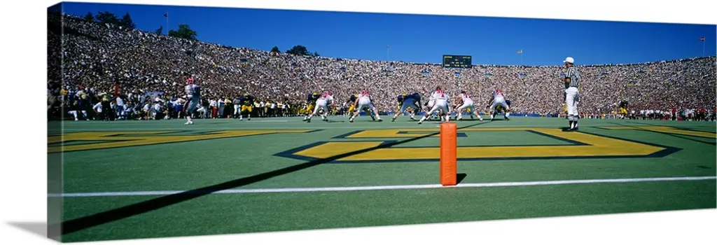 This panorama, taken by James Blakeway, captures the college ice hockey game between long-time rivals the University of Michigan and Michigan State University. The match-up, known as "The Big Chill at the Big House," was held at Michigan Stadium on December 11, 2010. The event set a new world record for the largest crowd at an outdoor ice hockey game with attendance of 113,411. The past record set in May 2010, at the International Ice Hockey Federation (IIHF) World Championship game, was 77,803. This is the second outdoor ice hockey game to be played between the two storied programs. The first game, also a resounding success, occurred in 2001 and was referred to as the "Cold War.