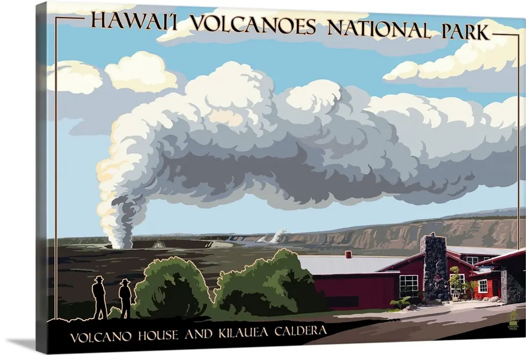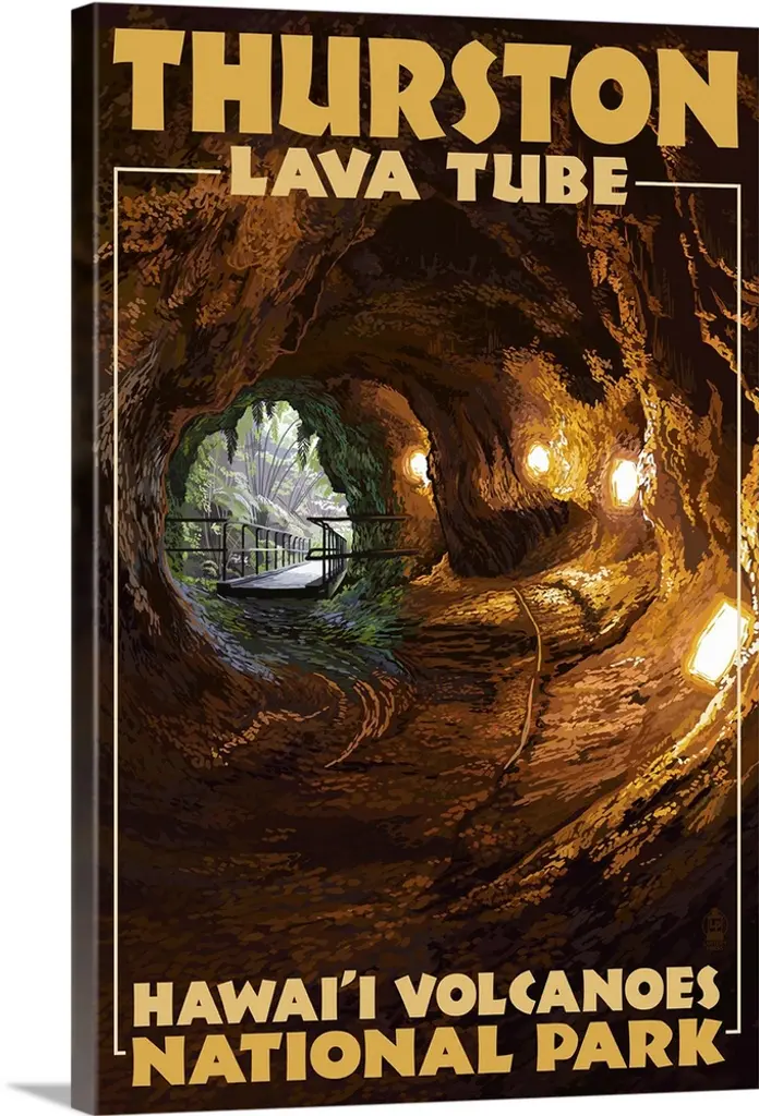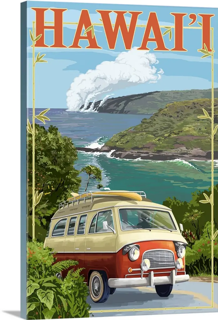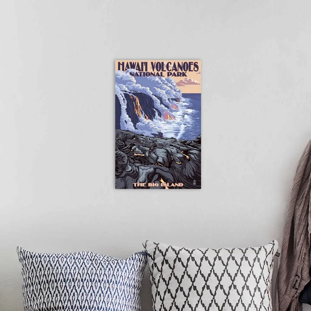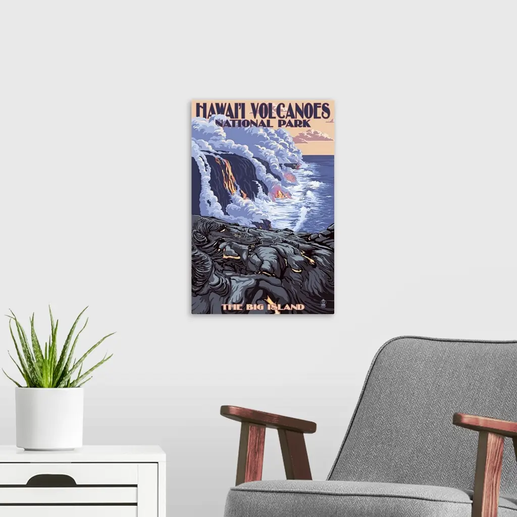The Big Island, Hawaii - Lava Flow Scene: Retro Travel Poster