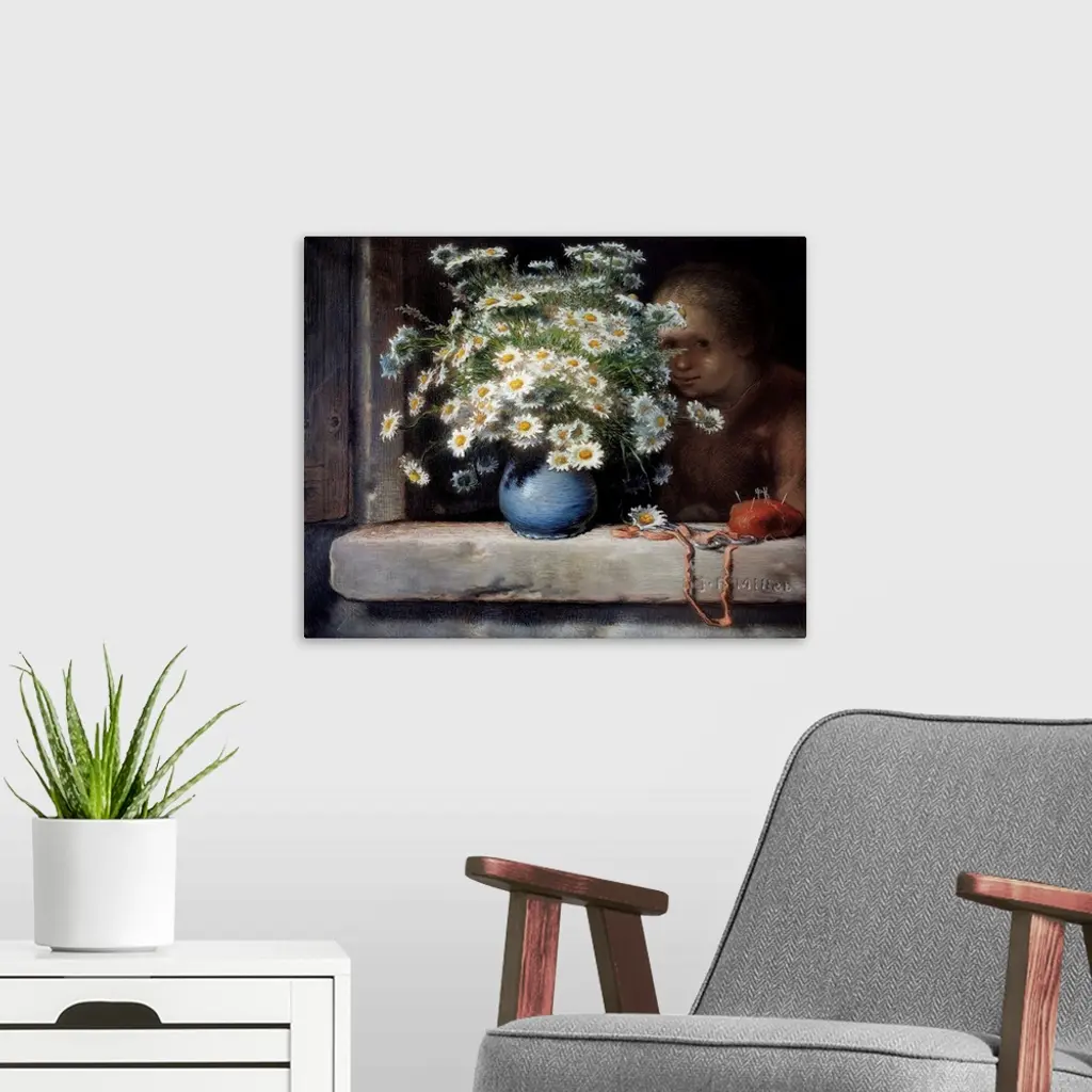 The bouquet of daisies. ( Le bouquet de marguerites ) Pastel painting by Jean Francois Millet (1814-1875), 1871. 0,7 x 0,83 m. Orsay Museum, Paris