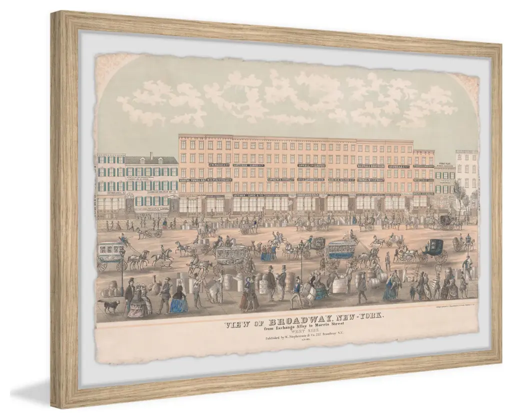 This print features a vintage view of Broadway, New York bustling with busy crowds of people. Proudly printed in the USA, this piece is printed on high quality archive paper and professionally hand-framed. With wall-mounting hooks included, this artful accent is ready to hang up as soon as it reaches your front door.- Top quality Gicle print on high resolution Archive Paper- Hand cut deckled edges- High quality durable non-warping frame- Finished under shatter resistant plexiglass- Arrives ready to hang- Includes a certificate of authenticity- Printed in the USA