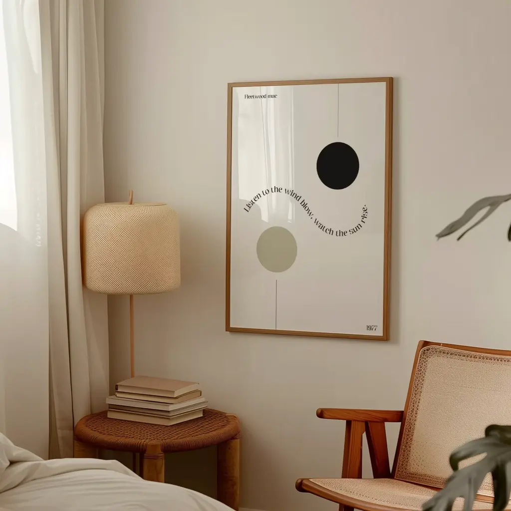 For the Fleetwood Mac fans, our bohemian inspired print takes influence from the iconic 77 single The chain. Our minimalist design paired with the famous lyrics (listen to the wind blow, watch the sunrise) is a nice reminder to remember to take in your surroundings slow down, get into nature and feel the life living around you. The perfect addition to your gallery wall. Giclée printed on Munken pure smooth cream paper which is certified by the Rainforest Alliance Program for FSC® Standards.*sold without frame*