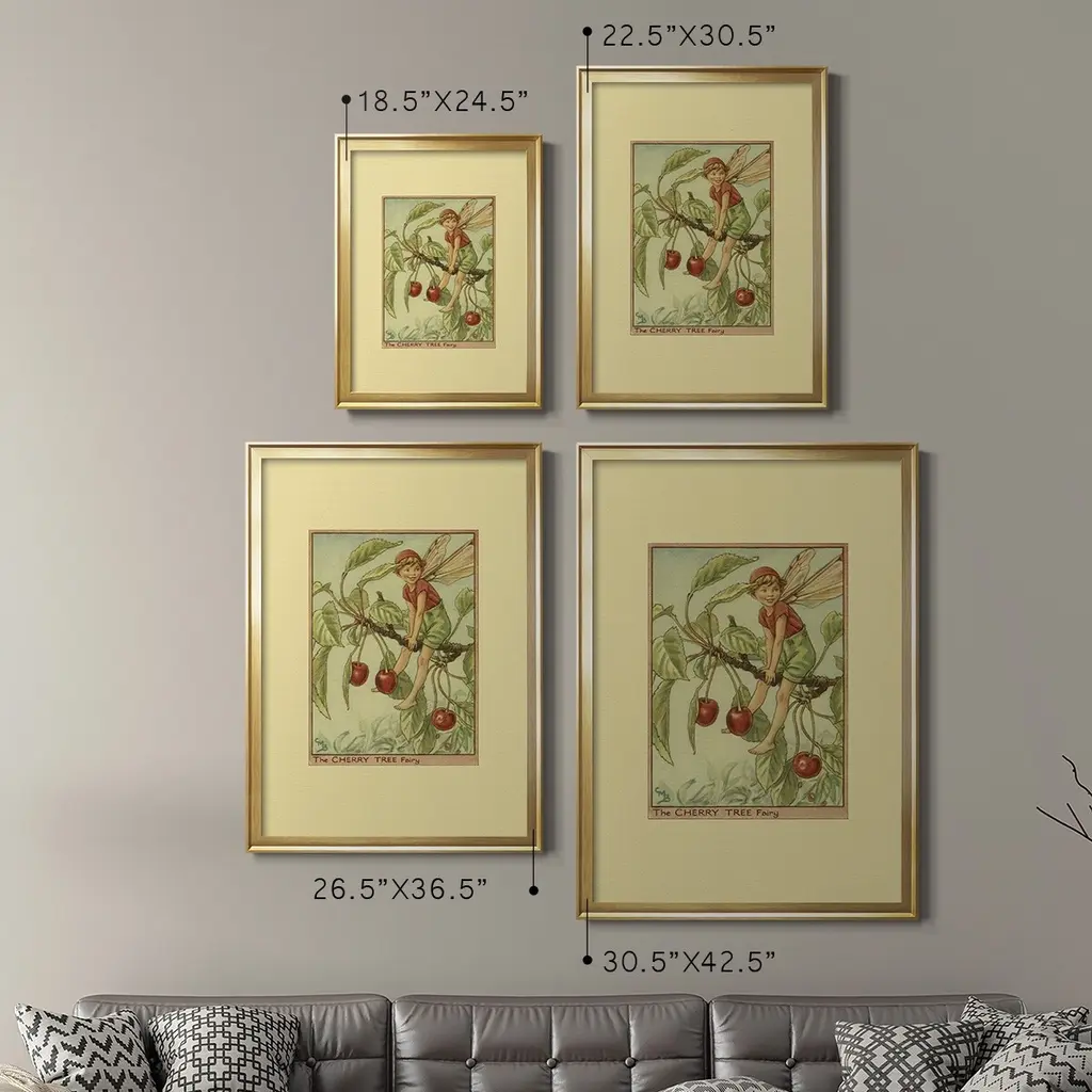 The Cherry Tree Fairy Premium Framed Print - Ready to Hang A Premium Framed Print created to last. Framed in distressed wood and available in an array of sizes and colors Featuring a beveled a solid wood stretcher bar, each piece comes ready to hand 4 SIZES AVAILABLE 30.5''X42.5'' - Overall Size 26.5'X36.5'' - Overall Size 22.5''x30.5'' - Overall Size 18.5''x24.5'' - Overall Size Each piece is made to order. Each piece comes with hanging hardware. Made in the USA Ready to Hang