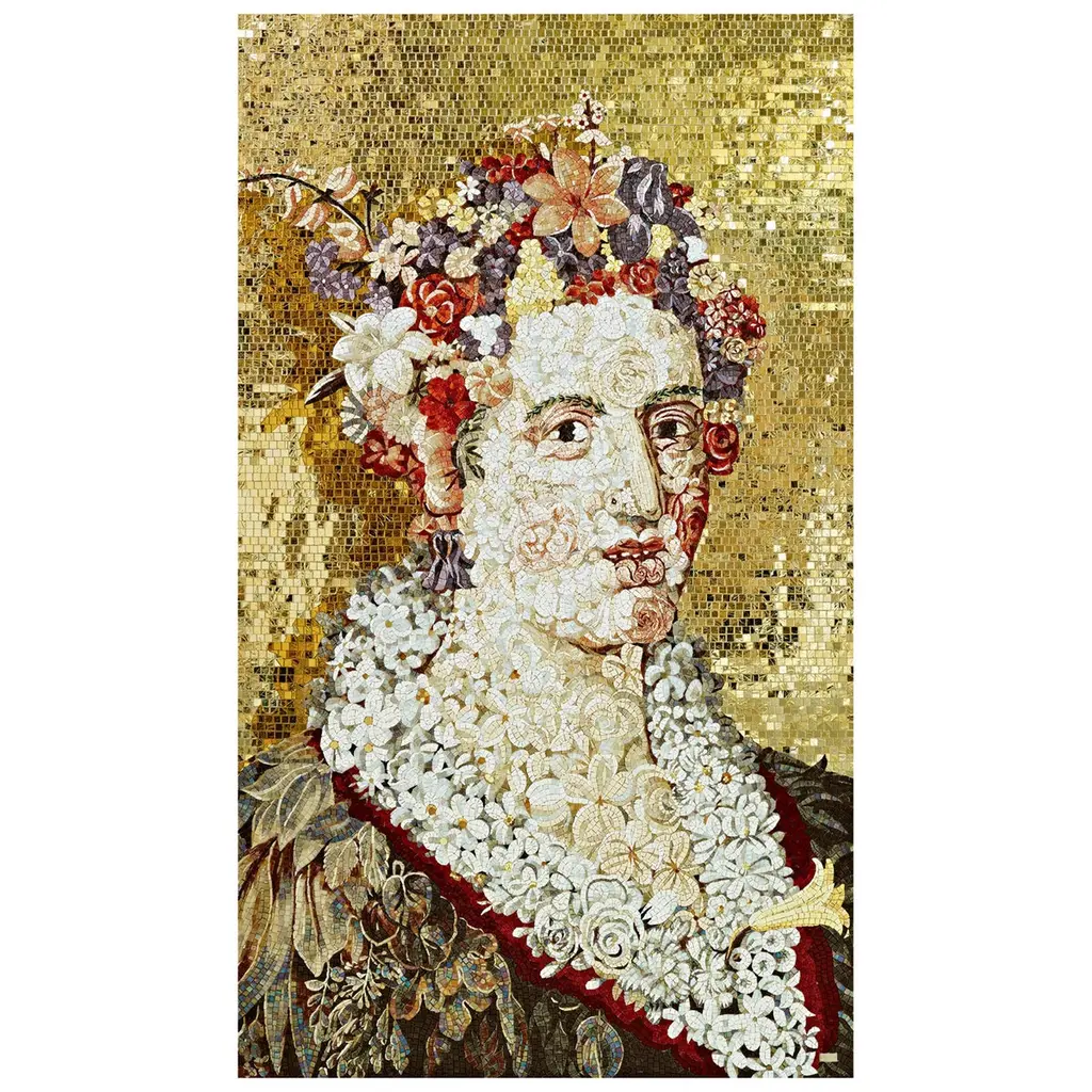 The Cherub Of Flowers Mosaic | Luxury Handcrafted Natural Stone Art - 80cm X 120cm (31" X 47") / With Frame