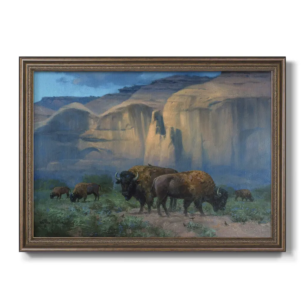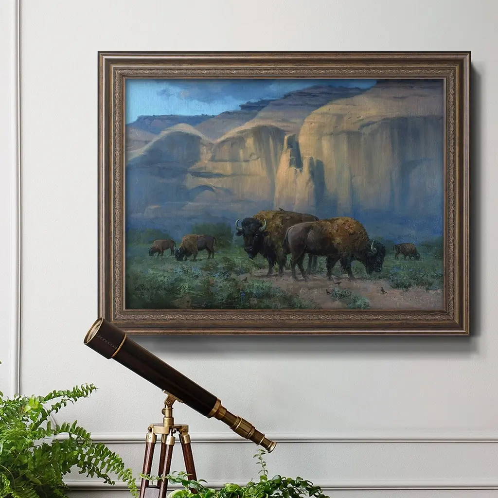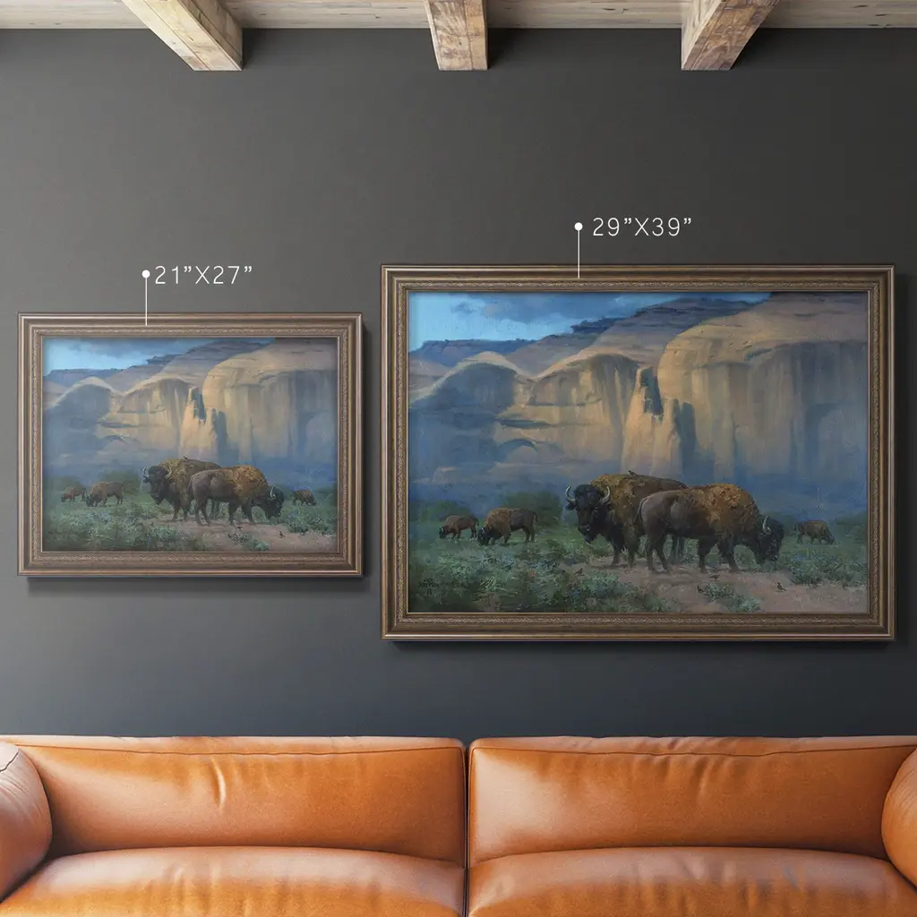 The Classic West Premium Framed Canvas- Ready to Hang A Premium Framed Canvas created to last. Framed in distressed wood and available in an array of sizes and colors Featuring a beveled a solid wood stretcher bar, each piece comes ready to hand 3 SIZES AVAILABLE 16''X20'' - Overall Size 18'X27'' - Overall Size 24''x36'' - Overall Size Each piece is made to order. Each piece comes with hanging hardware. Made in the USA Ready to Hang Giclee Paper Print Acrylic Glass Beveled Matt Board