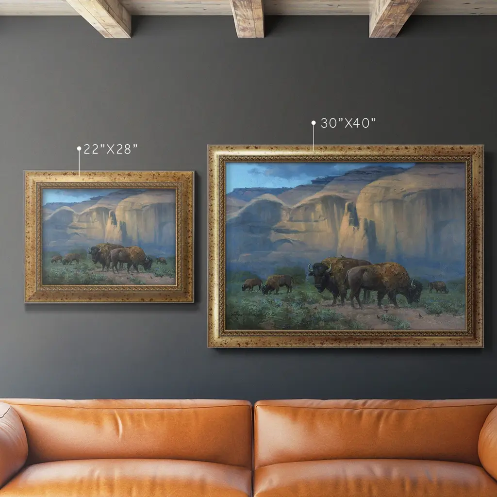 The Classic West Premium Framed Canvas- Ready to Hang A Premium Framed Canvas created to last. Framed in distressed wood and available in an array of sizes and colors Featuring a beveled a solid wood stretcher bar, each piece comes ready to hand 3 SIZES AVAILABLE 16''X20'' - Overall Size 18'X27'' - Overall Size 24''x36'' - Overall Size Each piece is made to order. Each piece comes with hanging hardware. Made in the USA Ready to Hang Giclee Paper Print Acrylic Glass Beveled Matt Board