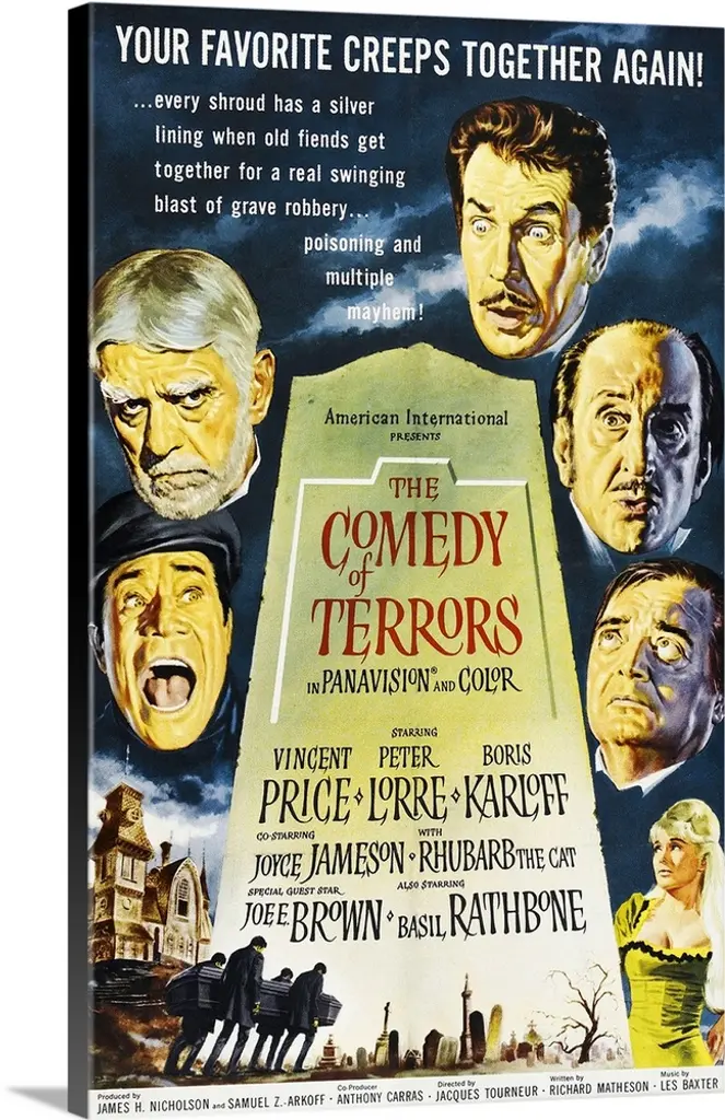 The Comedy Of Terrors, US Poster Art, Clockwise From Left: Boris Karloff, Joe E. Brown, Joyce Jameson, Vincent Price, Basil Rathbone, Peter Lorre, 1963.