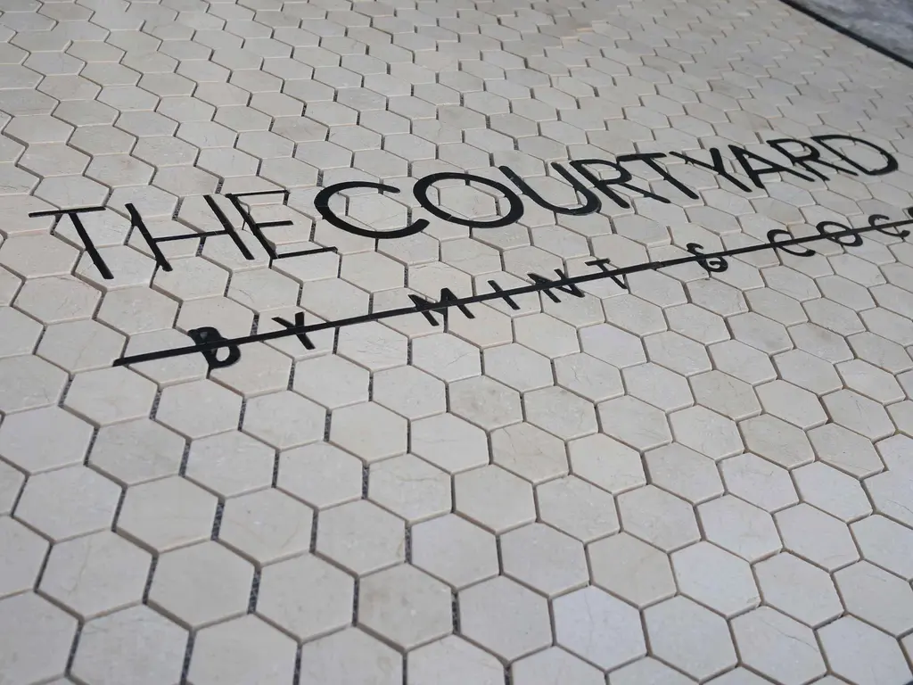 Introducing "The Courtyard - Custom Mosaic Stone Art," a stunning piece that encapsulates individuality and sophistication in every detail. This exceptional mosaic art is not just a decoration; it's a unique statement piece that transforms any space into a work of art. Crafted with precision, each stone is meticulously arranged in a beautiful petal mosaic pattern, making every installation truly one-of-a-kind.Our mosaic features an exquisite combination of classy colors that evoke a sense of elegance and serenity. The hexagon-shaped stones not only add a contemporary flair but also create a visually striking texture that draws the eye and sparks conversation. Whether you place it in your garden, patio, home, or office, this art piece will effortlessly enhance its surroundings.What sets "The Courtyard" apart is the personalization it offers. You can collaborate with us to incorporate a logo design and font variation that reflects your style and identity. This customization makes it a perfect gift for corporate events, weddings, or as a memorable keepsake for loved ones. Embrace modern artistry with "The Courtyard - Custom Mosaic Stone Art." Each piece is created with high-quality materials designed to withstand the elements, ensuring your art remains vibrant and beautiful for years to come. Enjoy the fusion of creativity, quality, and personal touch in a masterpiece that tells your story.Elevate your space and let your personality shine with this elegant custom mosaic. Discover the beauty and uniqueness of "The Courtyard" today, and make it a central piece in your home or garden that you will cherish forever.