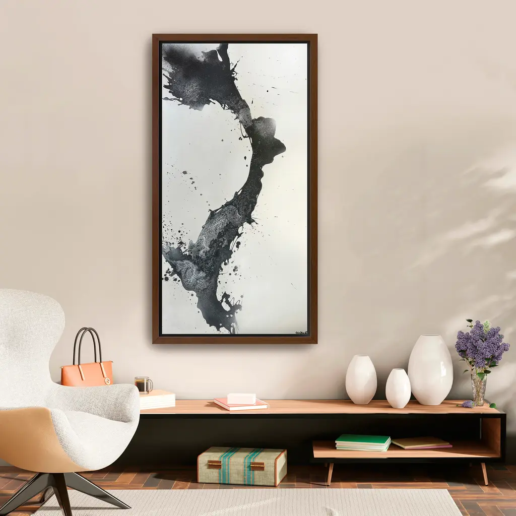This dramatic monochrome piece captures the fluidity of ink as it spills and swirls with organic energy and refined simplicity. Its bold black strokes and clean white canvas make it a powerful statement for sophisticated interiors. Our Gallery Wrap Canvas Prints are proudly assembled with high quality materials in California, USA. Each piece is printed on a thick, archival grade canvas using Giclee technology. It is then hand-stretched by our experienced artisans over solid wood bars, which will not warp over time. The final product is a piece personally crafted for you to confidently display on your wall. Care and Assembly: Ensure that the location of your piece has little to no exposure to heat, sunlight, and moisture. Wipe clean, only if needed. Each piece includes hanging hardware to hang on your wall vertically.
