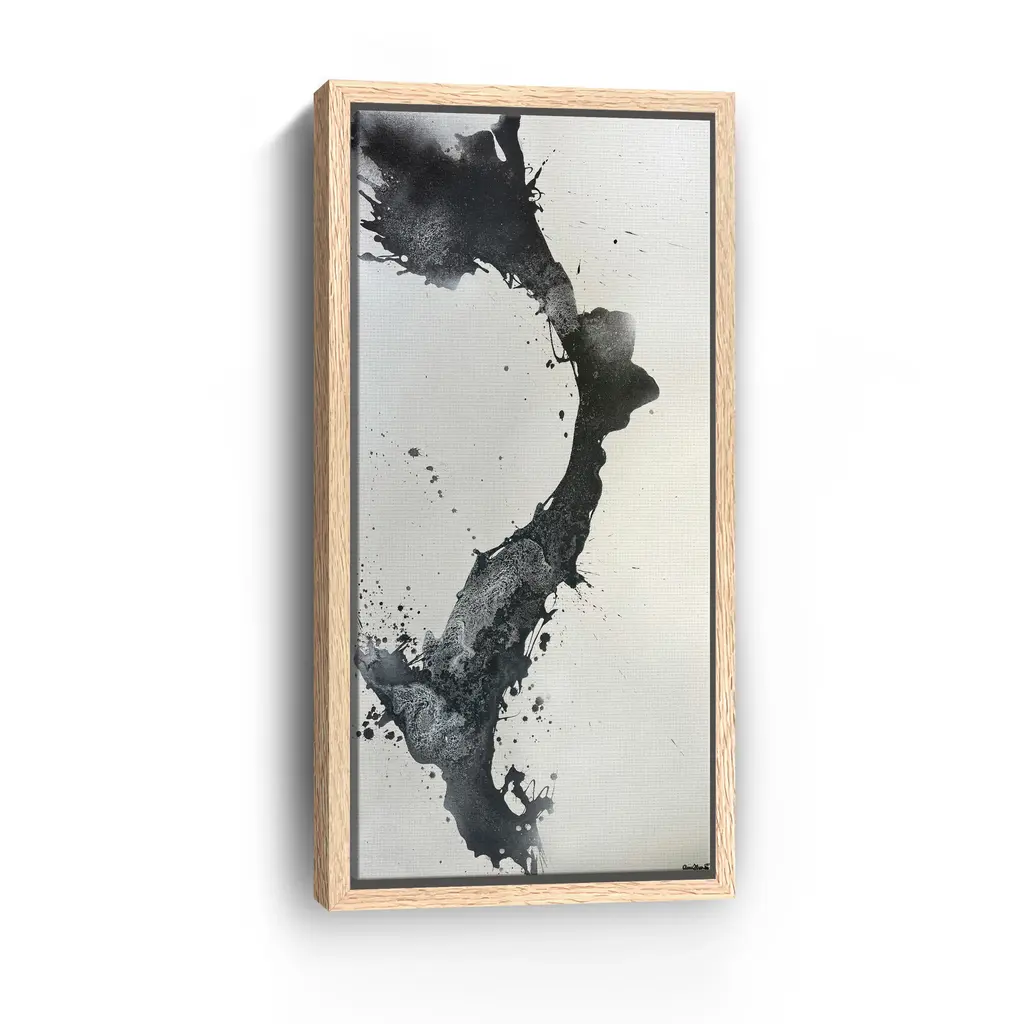 This dramatic monochrome piece captures the fluidity of ink as it spills and swirls with organic energy and refined simplicity. Its bold black strokes and clean white canvas make it a powerful statement for sophisticated interiors. Our Gallery Wrap Canvas Prints are proudly assembled with high quality materials in California, USA. Each piece is printed on a thick, archival grade canvas using Giclee technology. It is then hand-stretched by our experienced artisans over solid wood bars, which will not warp over time. The final product is a piece personally crafted for you to confidently display on your wall. Care and Assembly: Ensure that the location of your piece has little to no exposure to heat, sunlight, and moisture. Wipe clean, only if needed. Each piece includes hanging hardware to hang on your wall vertically.