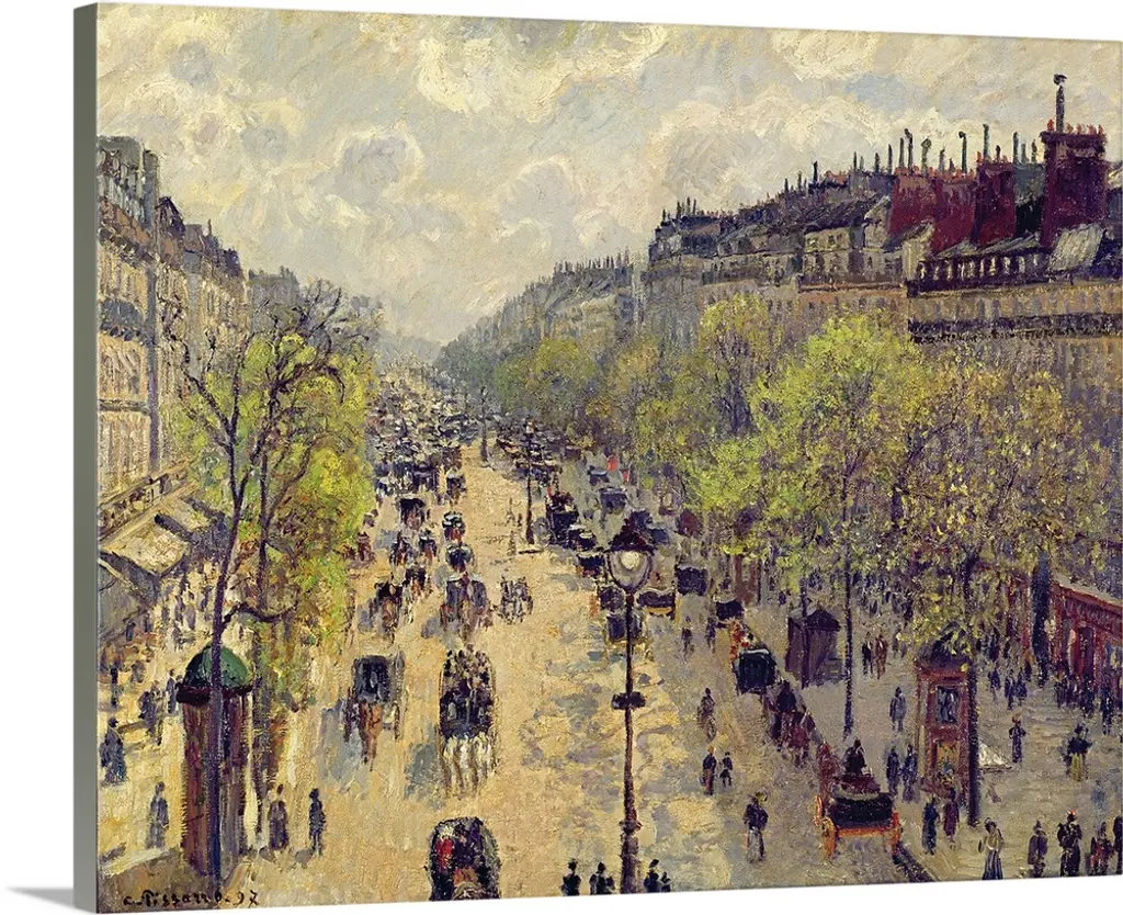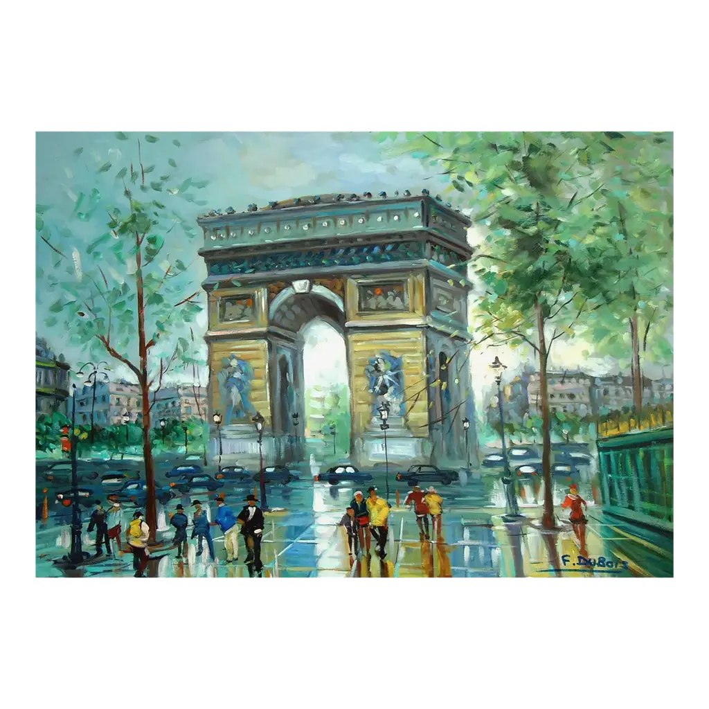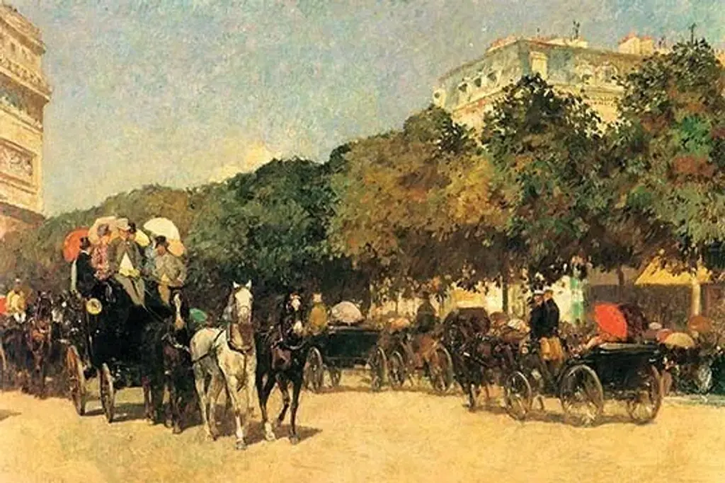 Boulevard in Paris near the Arc de Triumphe with four in hand carriages