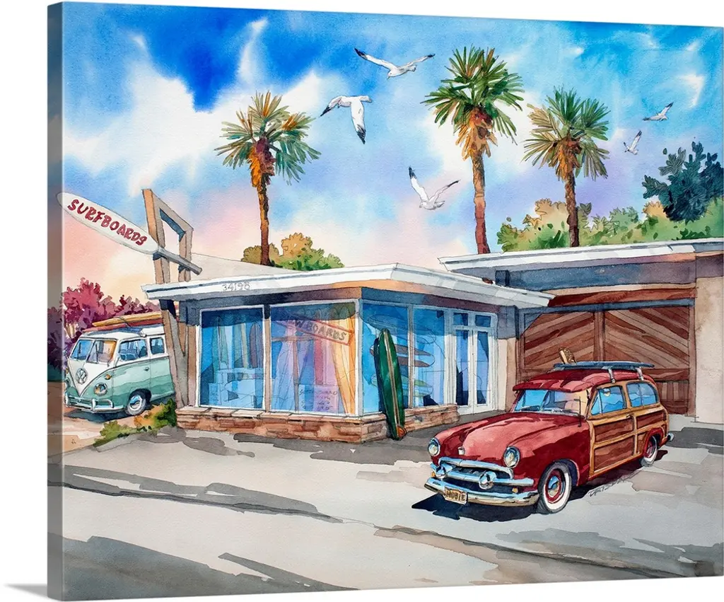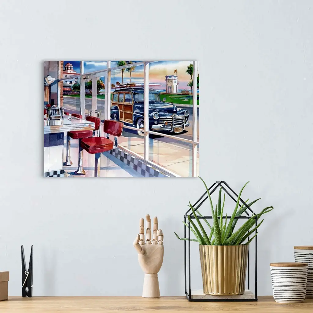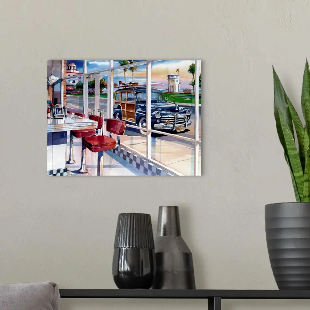 Watercolor painting of a 50's diner in Laguna Beach, CA.