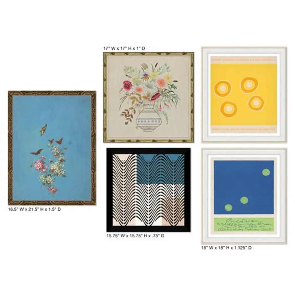 Available only at One Kings Lane: This set of five colorful prints takes all the guesswork out of creating an impactful gallery wall—though of course each artwork can stand on its own. The two floral prints, set in ornate frames, are an unexpected—but ideal!—complement to the three abstracts. The prints arrive framed and ready to hang.