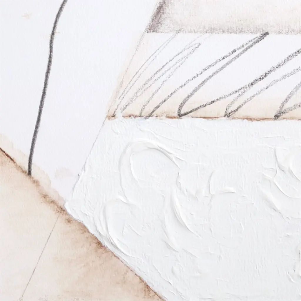Using layered paper, judicious lines and subtle modeling, Joe Turner gives this abstract composition eye-catching dimension. Deceptively simple, the artwork is an in-depth exploration of neutral color, texture and unusual shapes. Our giclee reproduction of the original mixed-media artwork is hand-embellished with additional texture to give it a straight-from-the-studio look.