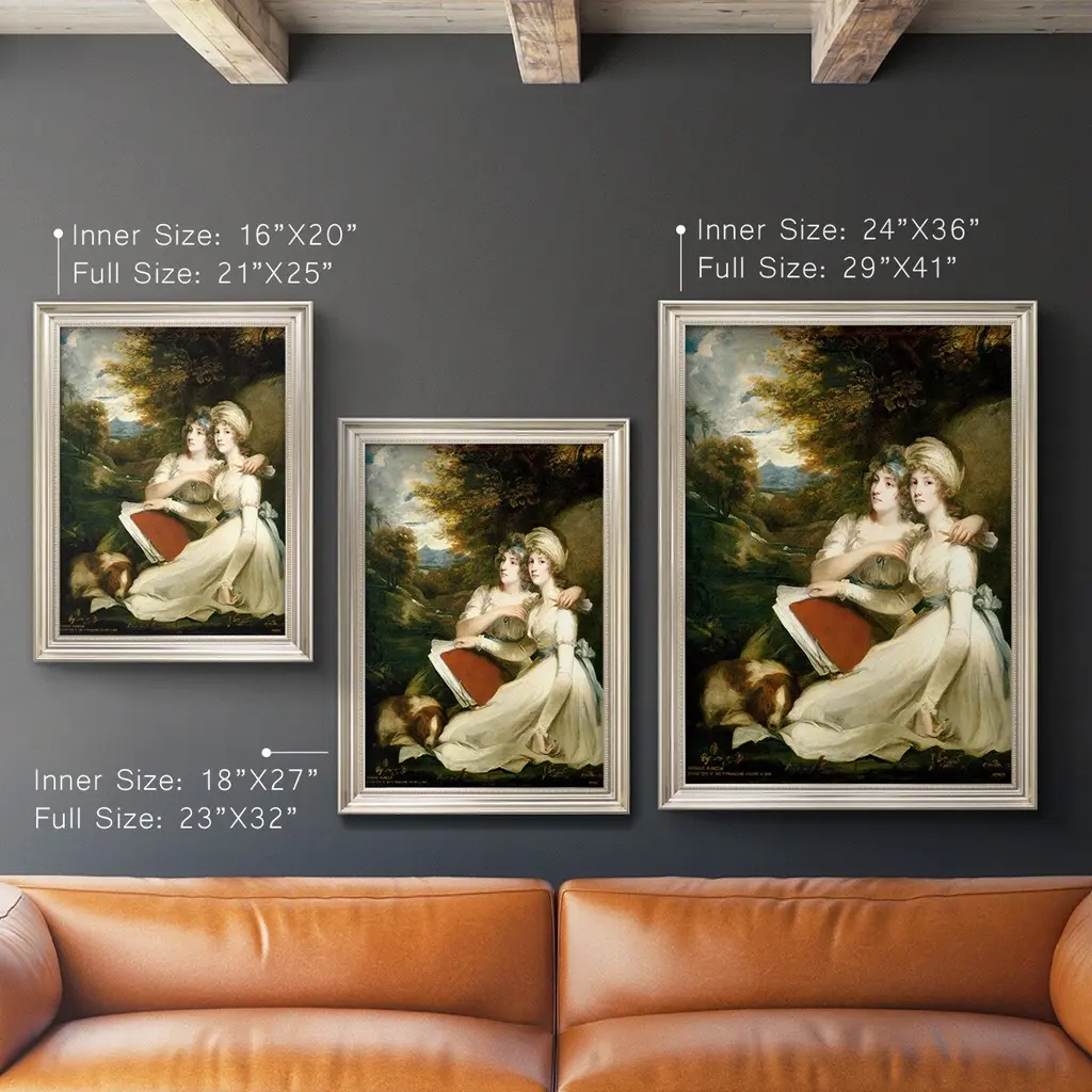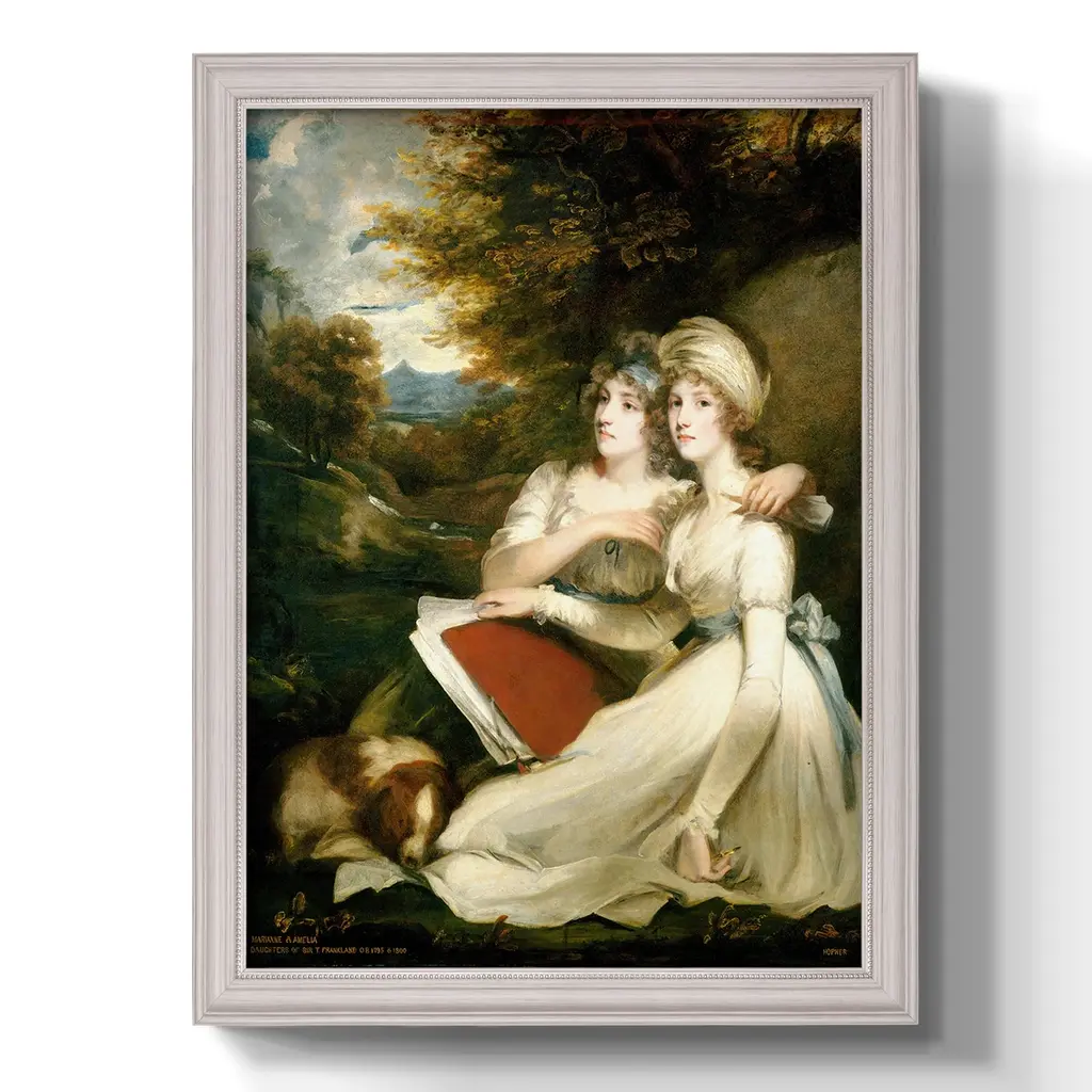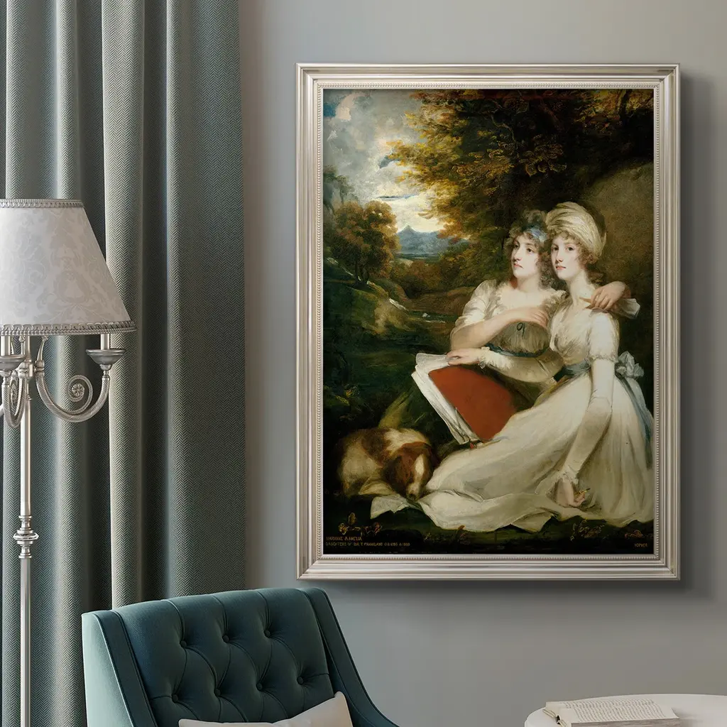 The Frankland Sisters Premium Framed Canvas- Ready to Hang A Premium Framed Canvas created to last. Framed in distressed wood and available in an array of sizes and colors Featuring a beveled a solid wood stretcher bar, each piece comes ready to hand 3 SIZES AVAILABLE 16''X20'' - Overall Size 18'X27'' - Overall Size 24''x36'' - Overall Size Each piece is made to order. Each piece comes with hanging hardware. Made in the USA Ready to Hang Giclee Paper Print Acrylic Glass Beveled Matt Board