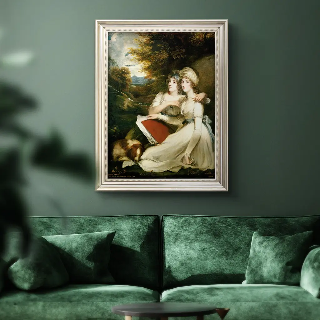 The Frankland Sisters Premium Framed Canvas- Ready to Hang A Premium Framed Canvas created to last. Framed in distressed wood and available in an array of sizes and colors Featuring a beveled a solid wood stretcher bar, each piece comes ready to hand 3 SIZES AVAILABLE 16''X20'' - Overall Size 18'X27'' - Overall Size 24''x36'' - Overall Size Each piece is made to order. Each piece comes with hanging hardware. Made in the USA Ready to Hang Giclee Paper Print Acrylic Glass Beveled Matt Board