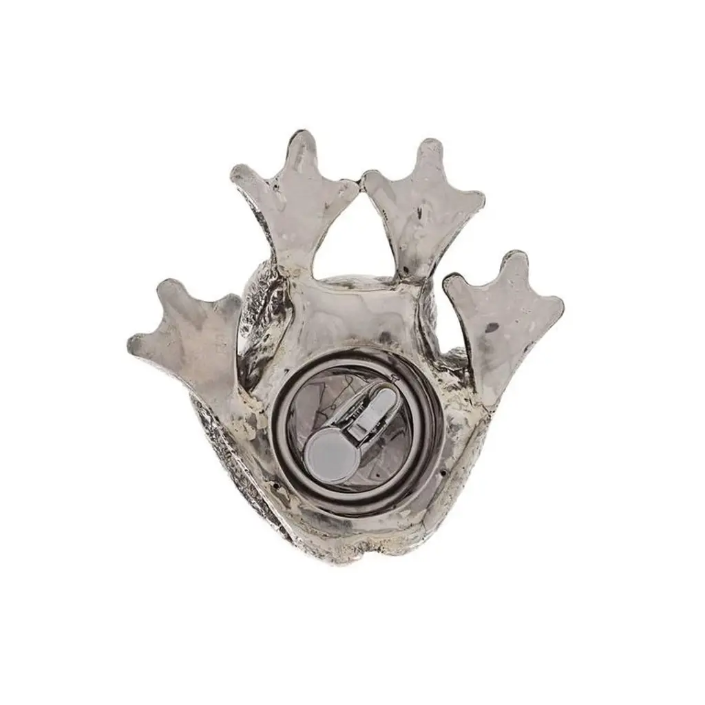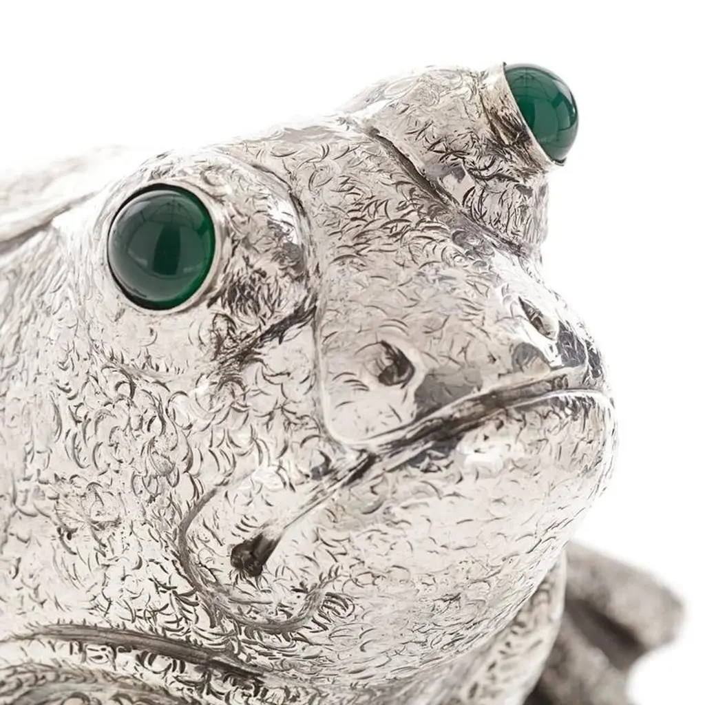 Playful true to life silver frog that serves as a lighter other than being a decorative piece of artwork. Expertly handmade by the Florentine silversmiths, the Lisi Brothers, its realism and expressive quality are quite uncanny.