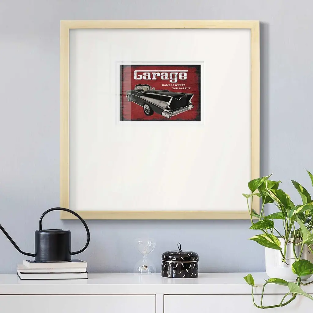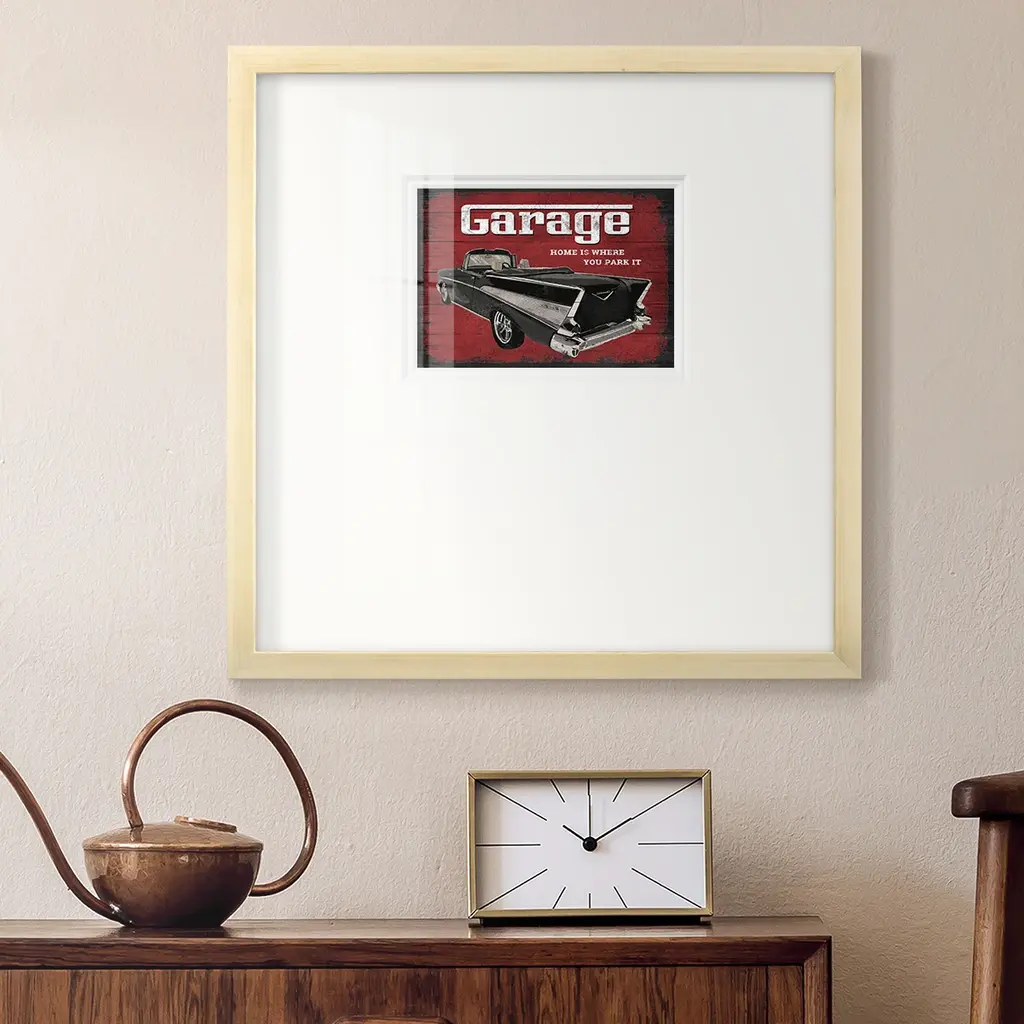The GaragePremium Framed Print A framed cold pressed paper print featuring superior double matting and quality frame. 2 SIZES AVAILABLE 16''X16''' - Overall Size 20''X20''' - Overall Size Each piece is made to order. Each piece comes with hanging hardware. Made in the USA Ready to Hang Giclee Paper Print Plexiglass Beveled Matt Board Double Matte Board