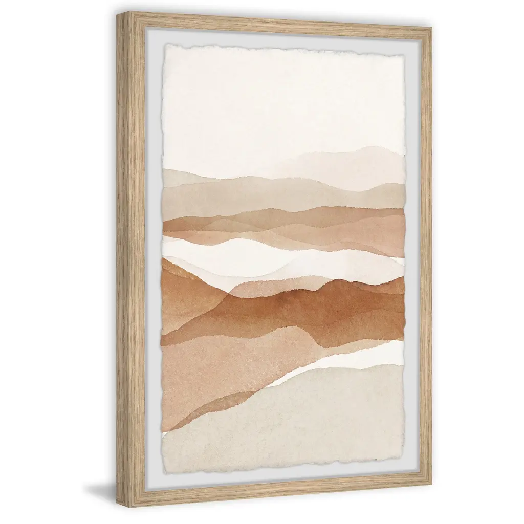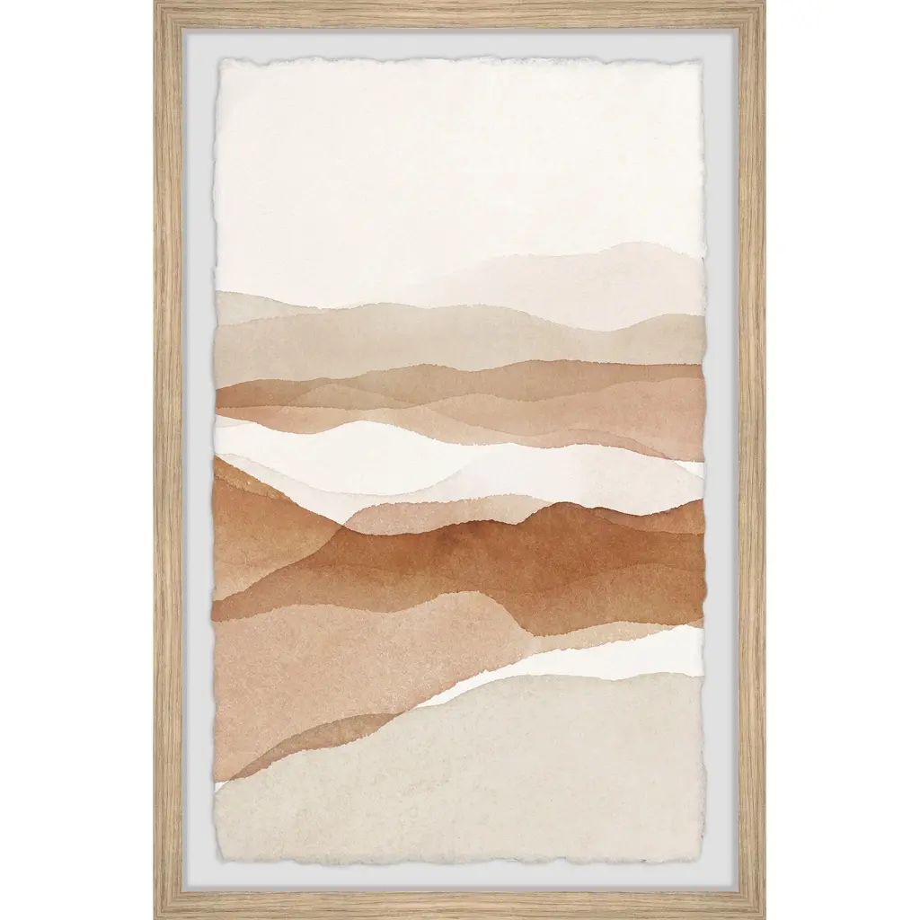 This watercolor painting print features a mountainous landscape rendered in a brown and beige color scheme. Proudly printed in the USA, this piece is printed on high quality archive paper and professionally hand-framed. With wall-mounting hooks included, this artful accent is ready to hang up as soon as it reaches your front door. • Top quality Giclee print on high resolution Archive Paper • Hand cut deckled edges • High quality durable non-warping frame • Finished under shatter resistant plexiglass • Arrives ready to hang • Includes a certificate of authenticity • Printed in the USA