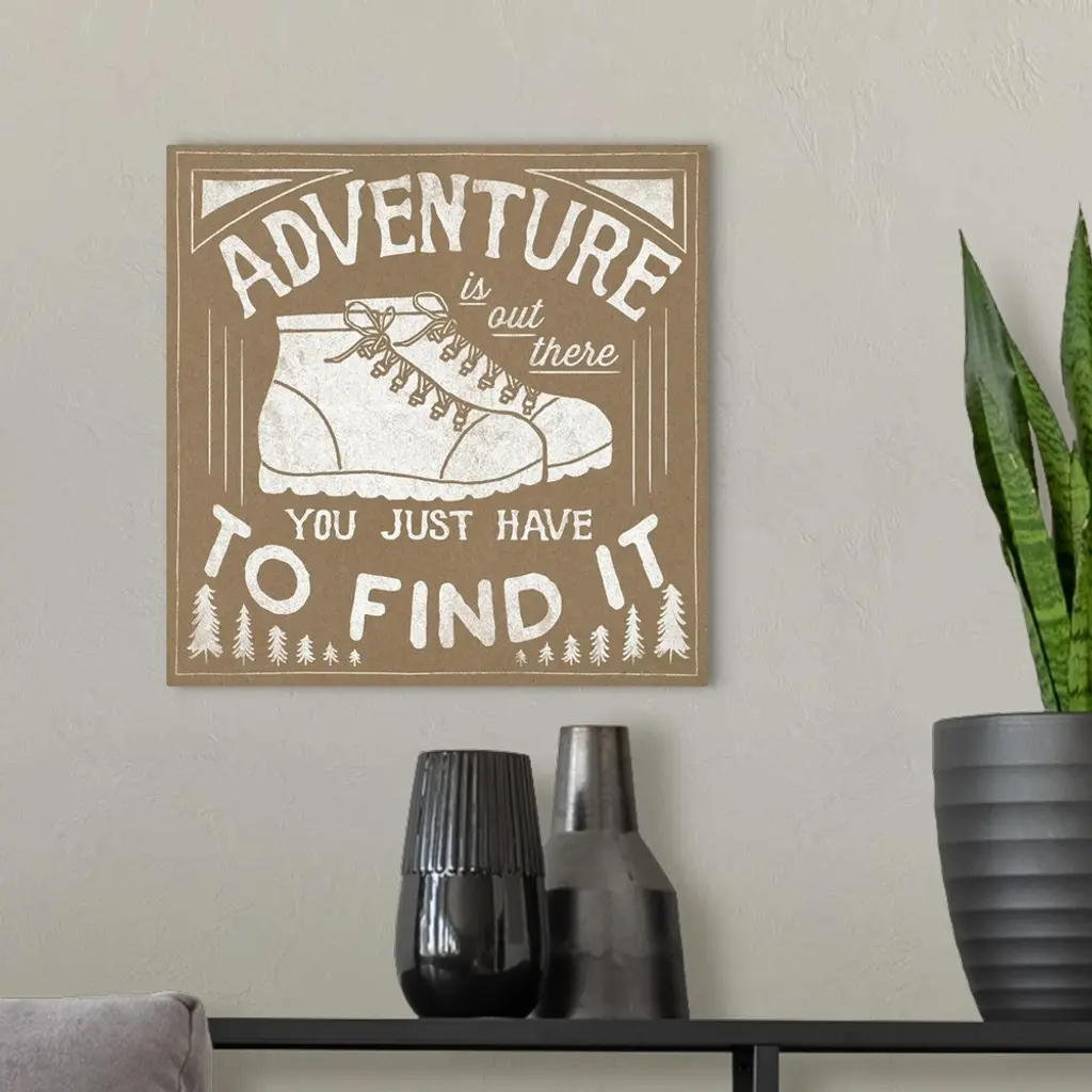 Outdoorsy inspirational sentiment artwork in a rustic natural colors.