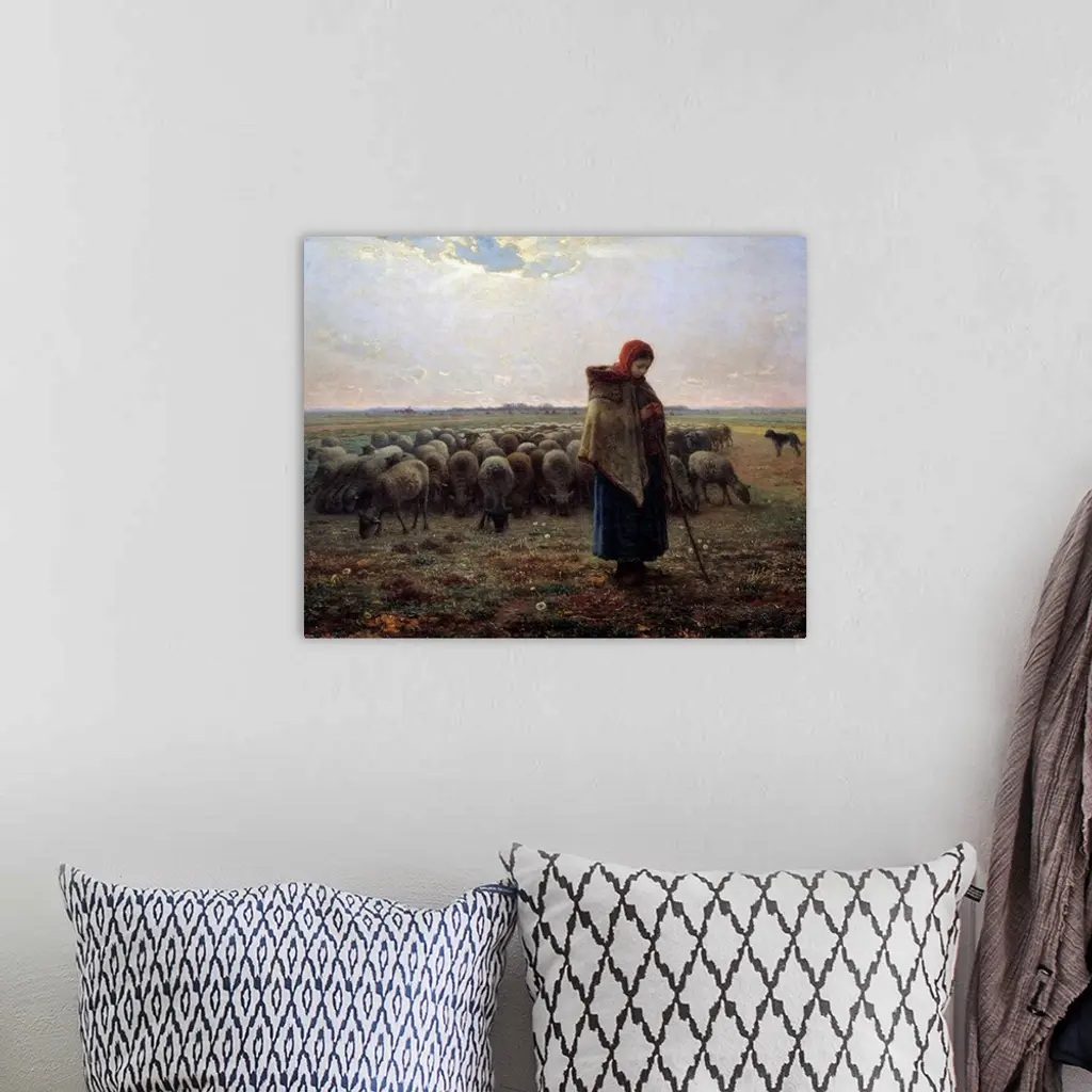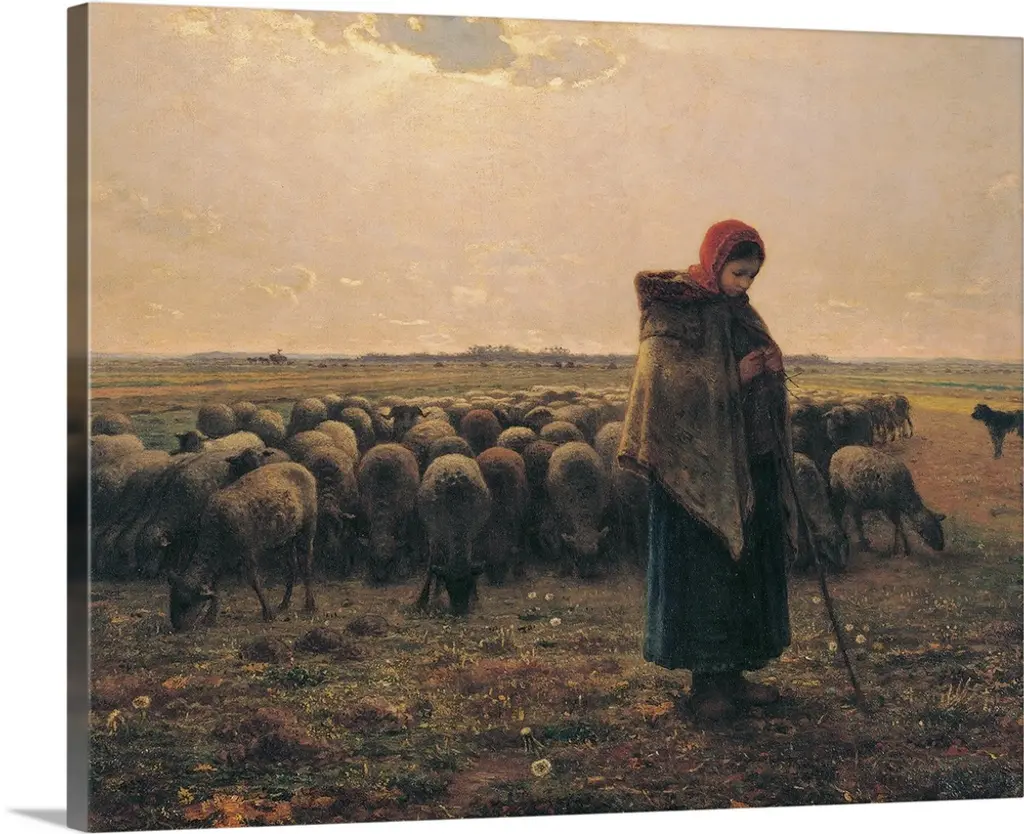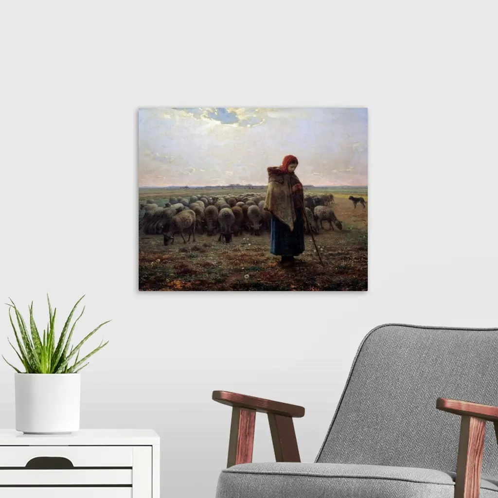 Shepherdess with her flock called the great shepherdess. Painting by Jean Francois Millet (1814-1875), 1864. Oil on canvas. 0,81 x 1,01 m. Orsay Museum, Paris