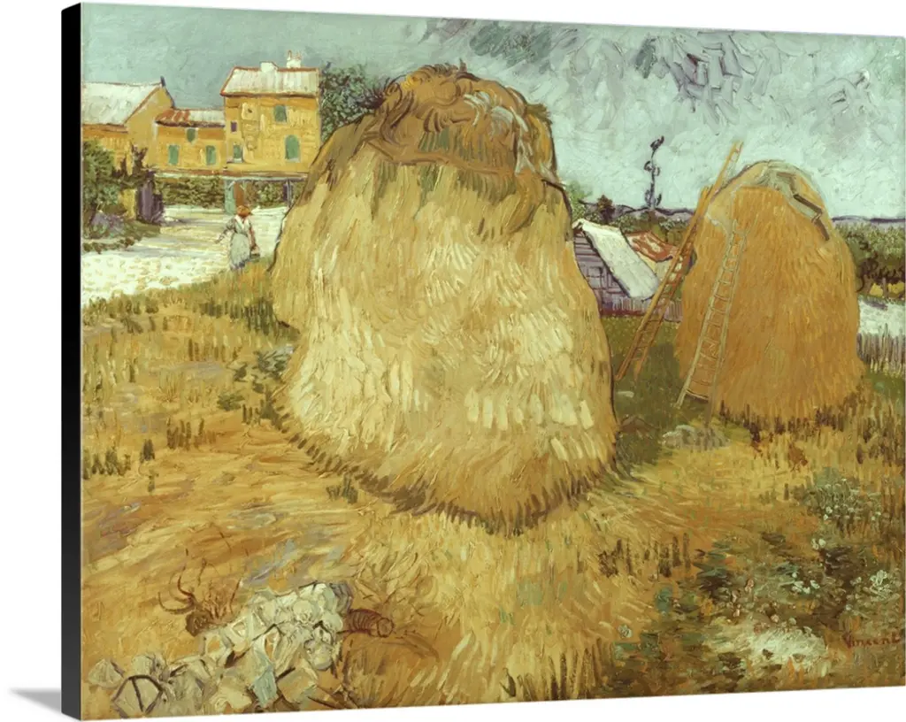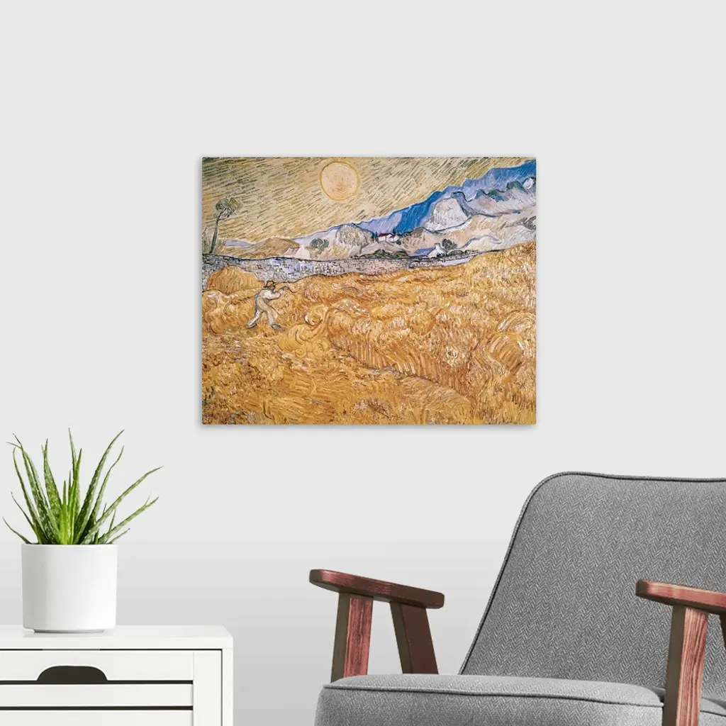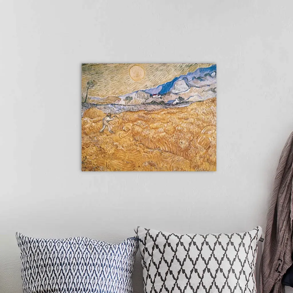 Big canvas of a classical painting of a man working in a field with a countryside in the background.