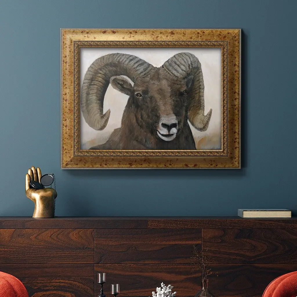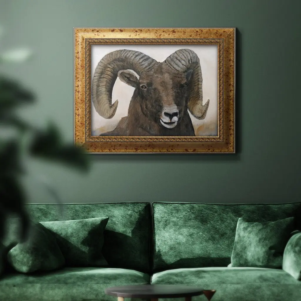 The Horns Have It I Premium Framed Canvas- Ready to Hang A Premium Framed Canvas created to last. Framed in distressed wood and available in an array of sizes and colors Featuring a beveled a solid wood stretcher bar, each piece comes ready to hand 3 SIZES AVAILABLE 16''X20'' - Overall Size 18'X27'' - Overall Size 24''x36'' - Overall Size Each piece is made to order. Each piece comes with hanging hardware. Made in the USA Ready to Hang Giclee Paper Print Acrylic Glass Beveled Matt Board