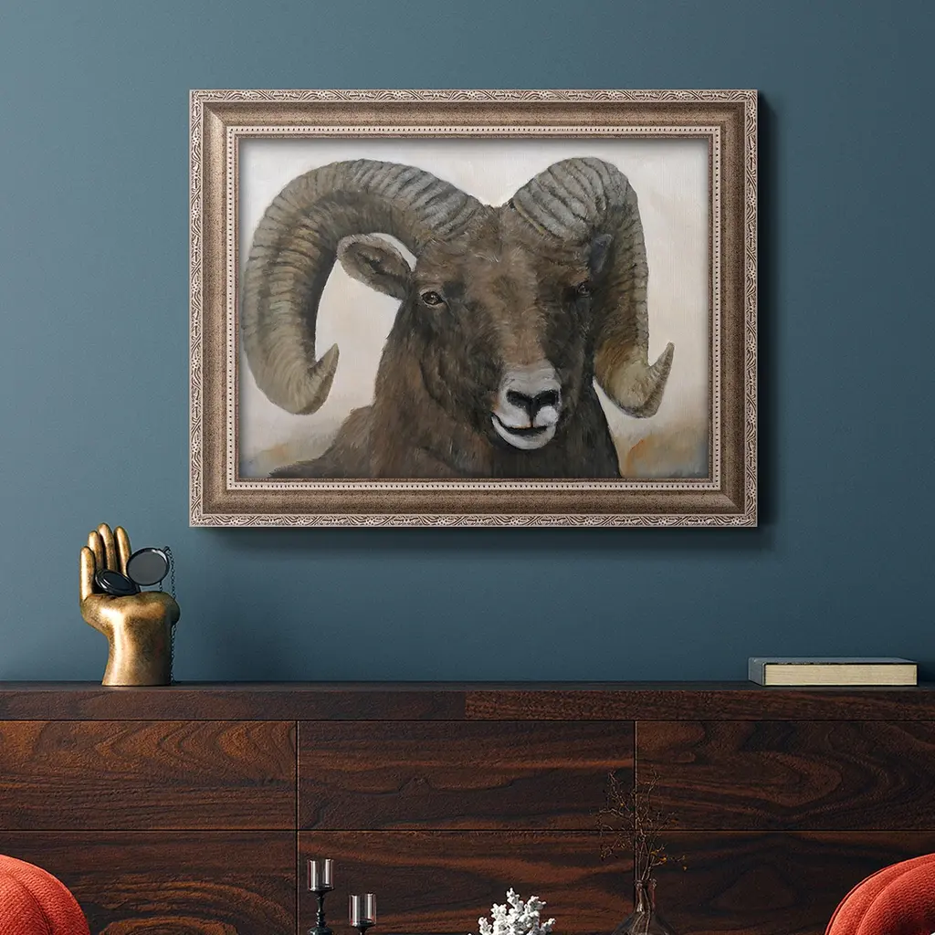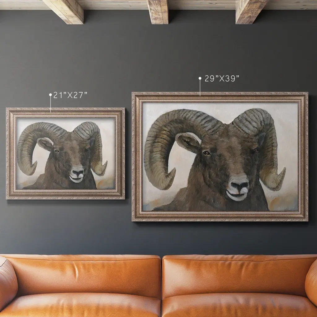 The Horns Have It I Premium Framed Canvas- Ready to Hang A Premium Framed Canvas created to last. Framed in distressed wood and available in an array of sizes and colors Featuring a beveled a solid wood stretcher bar, each piece comes ready to hand 3 SIZES AVAILABLE 16''X20'' - Overall Size 18'X27'' - Overall Size 24''x36'' - Overall Size Each piece is made to order. Each piece comes with hanging hardware. Made in the USA Ready to Hang Giclee Paper Print Acrylic Glass Beveled Matt Board