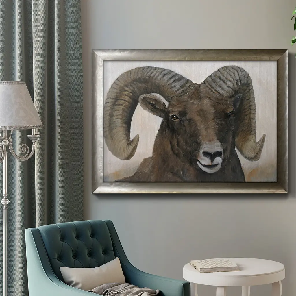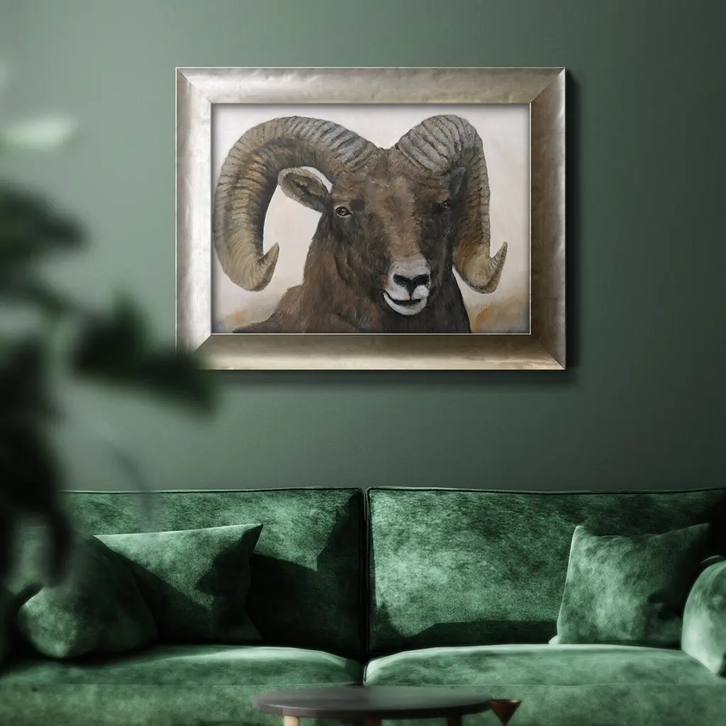 The Horns Have It I Premium Framed Canvas- Ready to Hang A Premium Framed Canvas created to last. Framed in distressed wood and available in an array of sizes and colors Featuring a beveled a solid wood stretcher bar, each piece comes ready to hand 3 SIZES AVAILABLE 16''X20'' - Overall Size 18'X27'' - Overall Size 24''x36'' - Overall Size Each piece is made to order. Each piece comes with hanging hardware. Made in the USA Ready to Hang Giclee Paper Print Acrylic Glass Beveled Matt Board