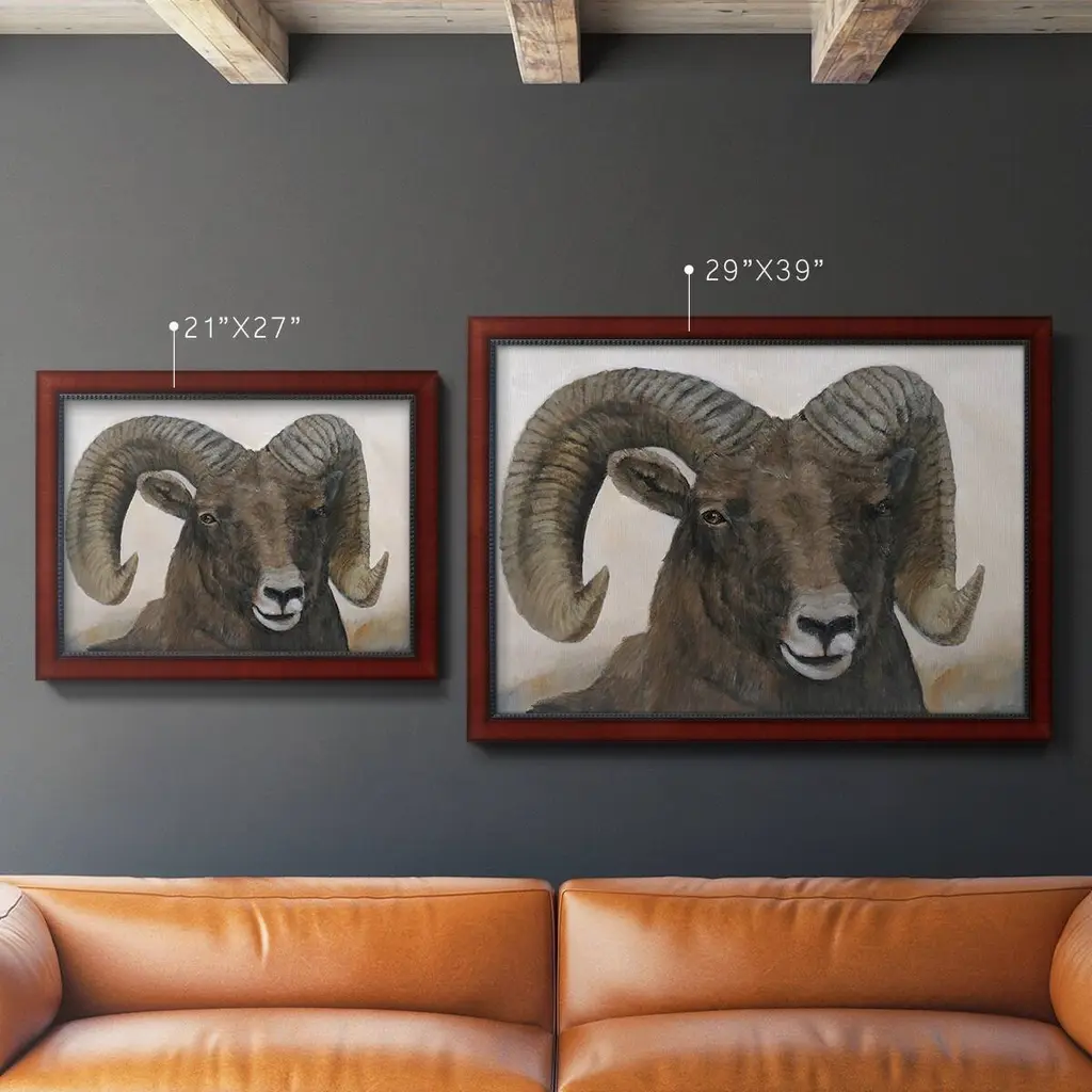 The Horns Have It I Premium Framed Canvas- Ready to Hang A Premium Framed Canvas created to last. Framed in distressed wood and available in an array of sizes and colors Featuring a beveled a solid wood stretcher bar, each piece comes ready to hand 3 SIZES AVAILABLE 16''X20'' - Overall Size 18'X27'' - Overall Size 24''x36'' - Overall Size Each piece is made to order. Each piece comes with hanging hardware. Made in the USA Ready to Hang Giclee Paper Print Acrylic Glass Beveled Matt Board