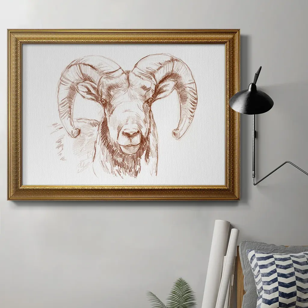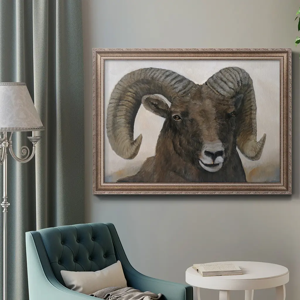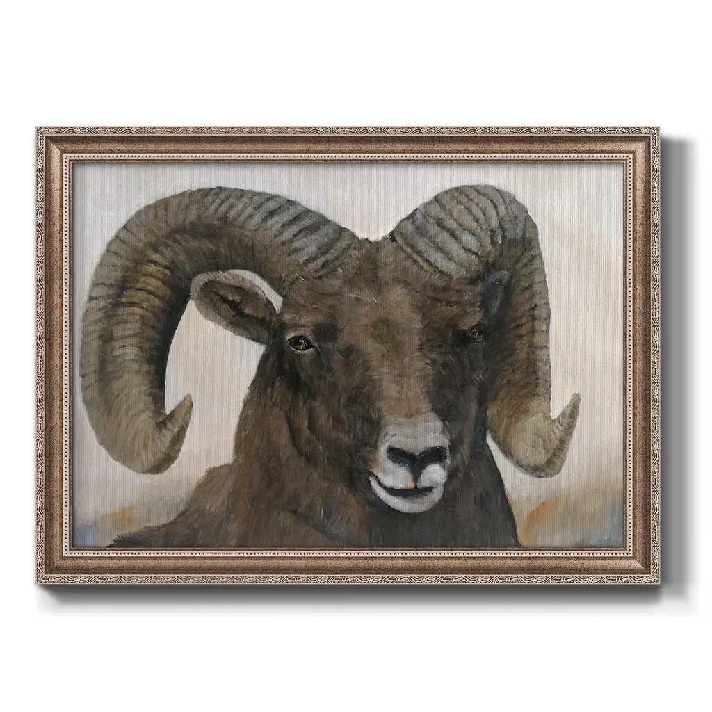 The Horns Have It I Premium Framed Canvas- Ready to Hang A Premium Framed Canvas created to last. Framed in distressed wood and available in an array of sizes and colors Featuring a beveled a solid wood stretcher bar, each piece comes ready to hand 3 SIZES AVAILABLE 16''X20'' - Overall Size 18'X27'' - Overall Size 24''x36'' - Overall Size Each piece is made to order. Each piece comes with hanging hardware. Made in the USA Ready to Hang Giclee Paper Print Acrylic Glass Beveled Matt Board