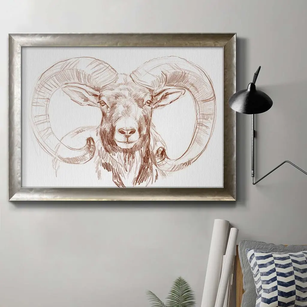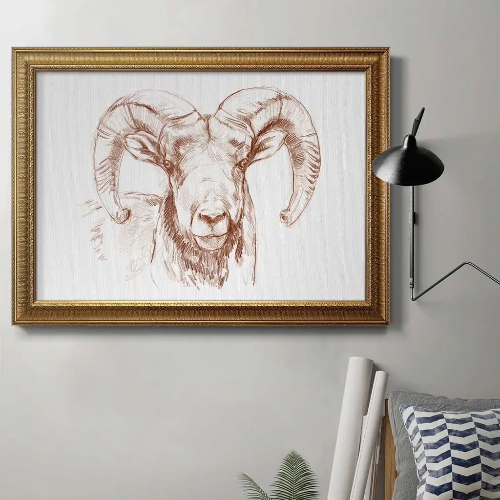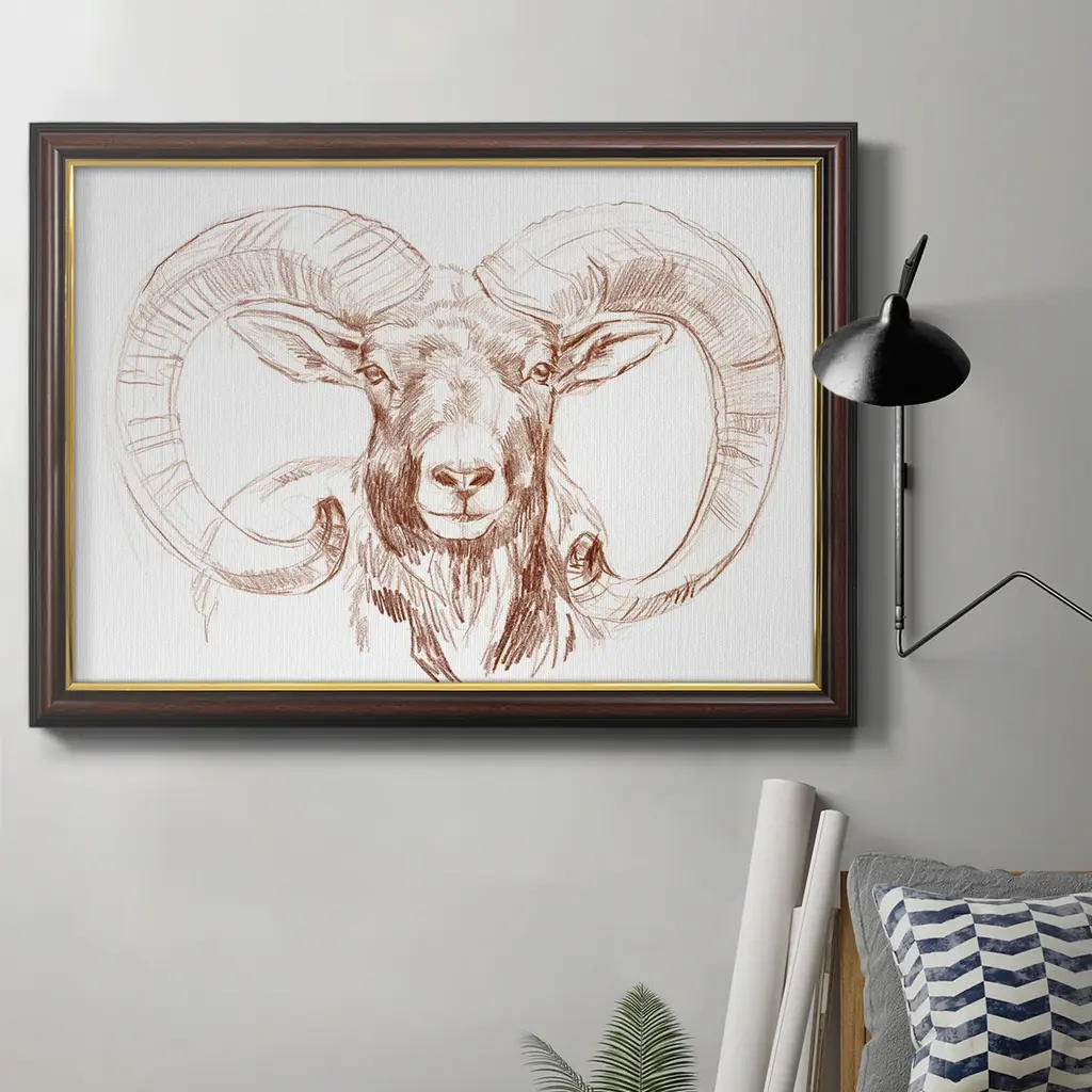 The Horns Have It I Premium Framed Canvas- Ready to Hang A Premium Framed Canvas created to last. Framed in distressed wood and available in an array of sizes and colors Featuring a beveled a solid wood stretcher bar, each piece comes ready to hand 3 SIZES AVAILABLE 16''X20'' - Overall Size 18'X27'' - Overall Size 24''x36'' - Overall Size Each piece is made to order. Each piece comes with hanging hardware. Made in the USA Ready to Hang Giclee Paper Print Acrylic Glass Beveled Matt Board
