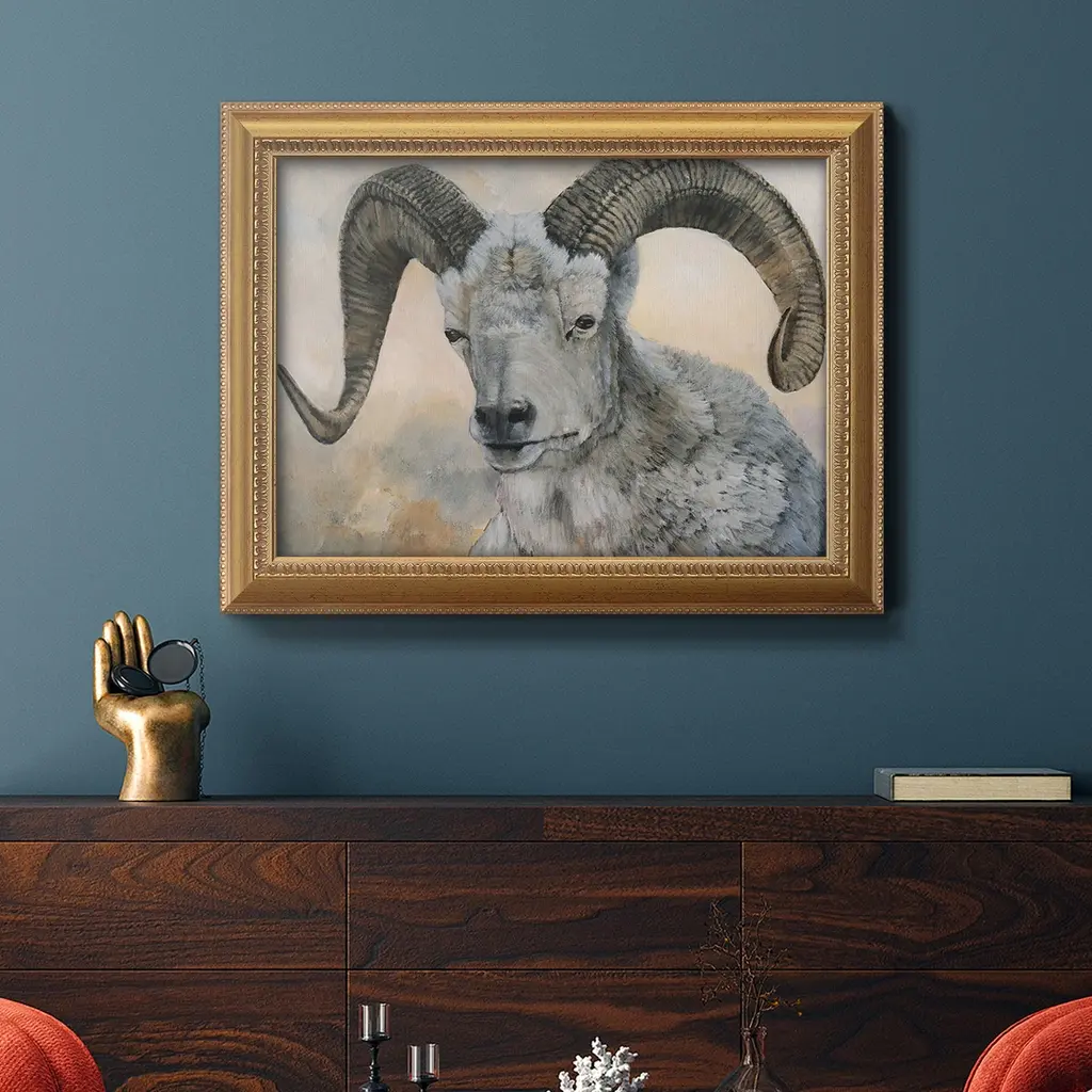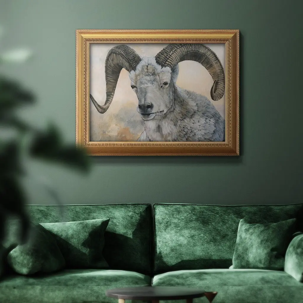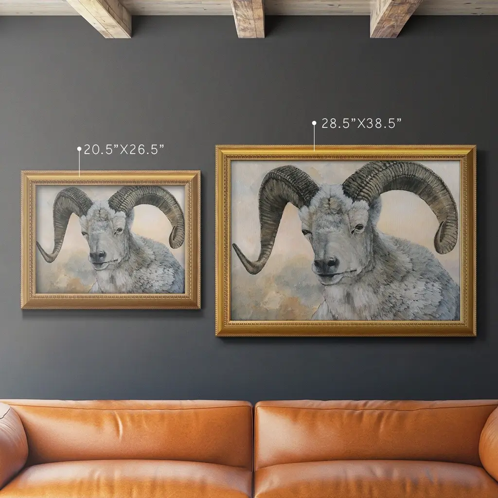 The Horns Have It II Premium Framed Canvas- Ready to Hang A Premium Framed Canvas created to last. Framed in distressed wood and available in an array of sizes and colors Featuring a beveled a solid wood stretcher bar, each piece comes ready to hand 3 SIZES AVAILABLE 16''X20'' - Overall Size 18'X27'' - Overall Size 24''x36'' - Overall Size Each piece is made to order. Each piece comes with hanging hardware. Made in the USA Ready to Hang Giclee Paper Print Acrylic Glass Beveled Matt Board