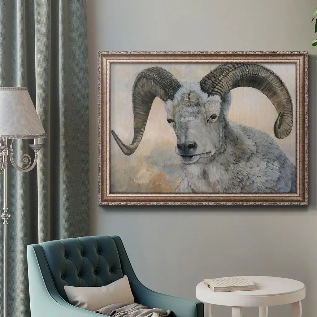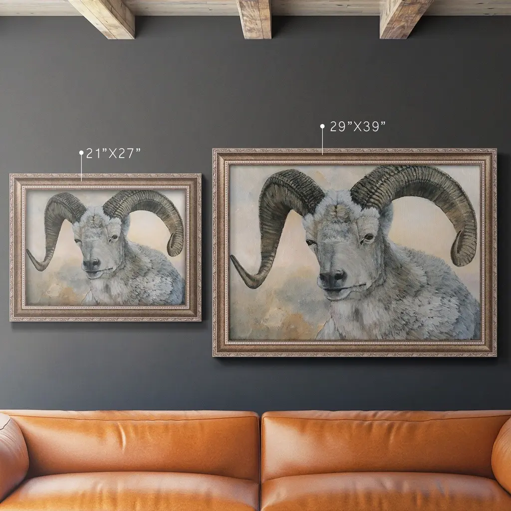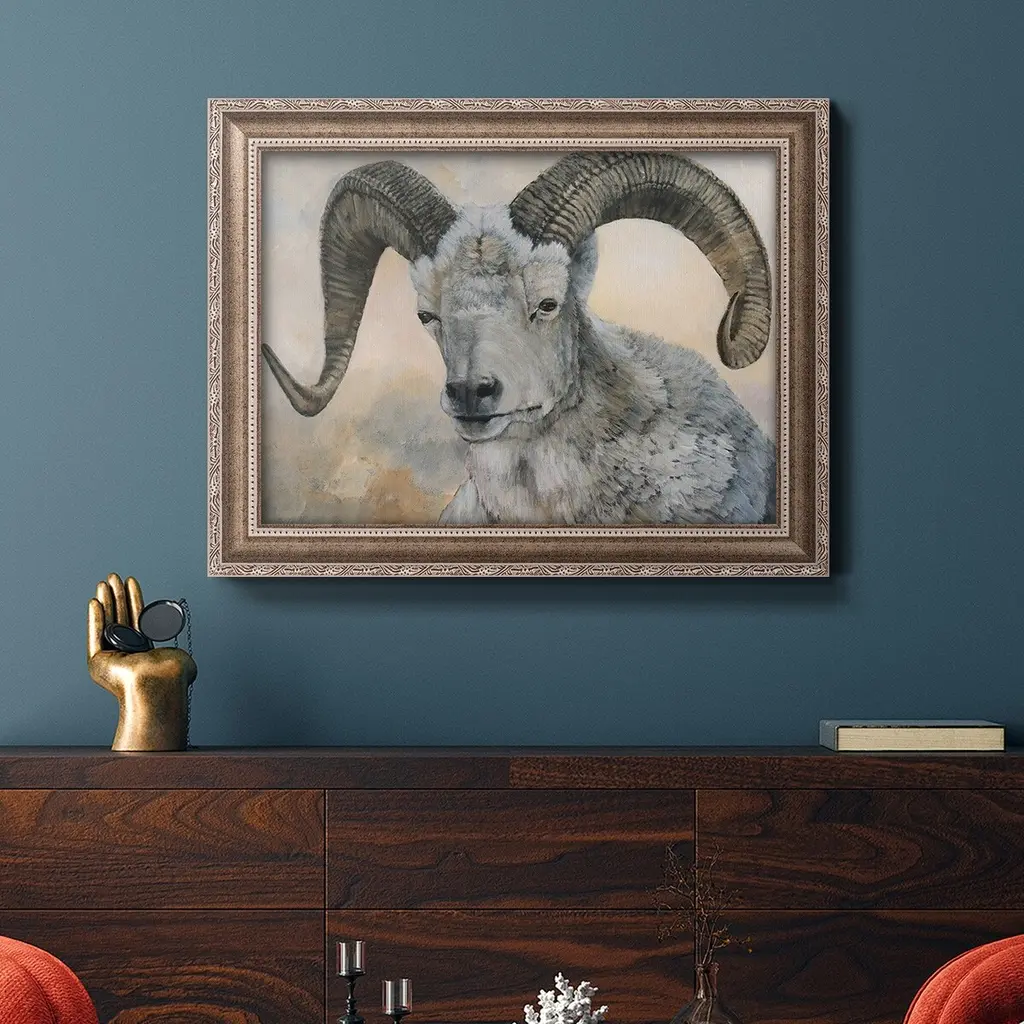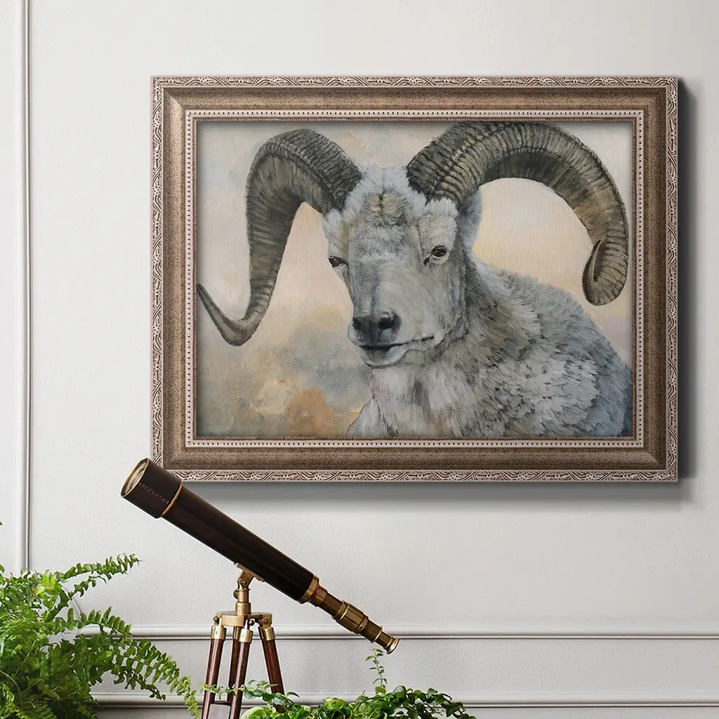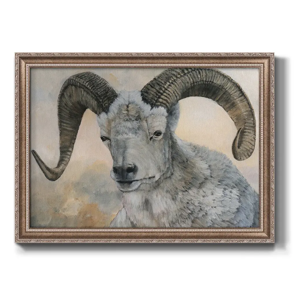 The Horns Have It II Premium Framed Canvas- Ready to Hang A Premium Framed Canvas created to last. Framed in distressed wood and available in an array of sizes and colors Featuring a beveled a solid wood stretcher bar, each piece comes ready to hand 3 SIZES AVAILABLE 16''X20'' - Overall Size 18'X27'' - Overall Size 24''x36'' - Overall Size Each piece is made to order. Each piece comes with hanging hardware. Made in the USA Ready to Hang Giclee Paper Print Acrylic Glass Beveled Matt Board