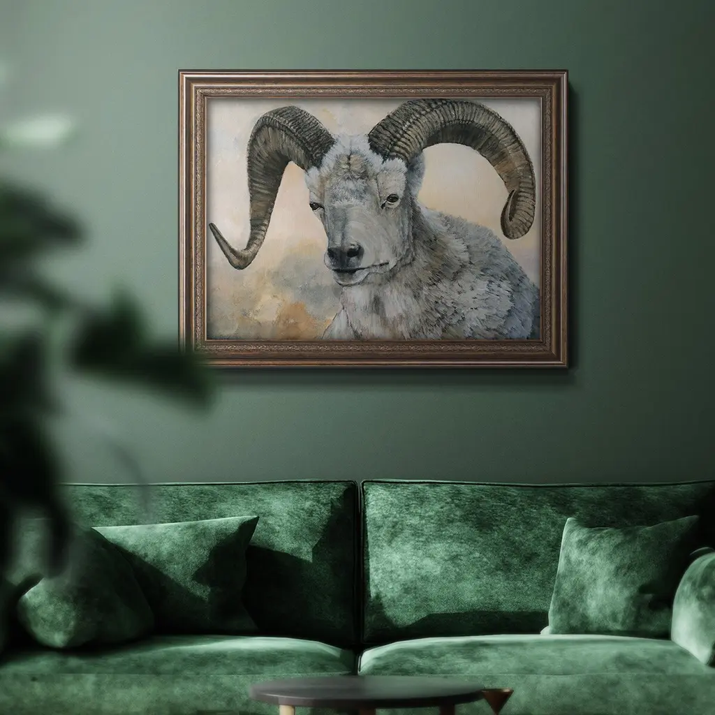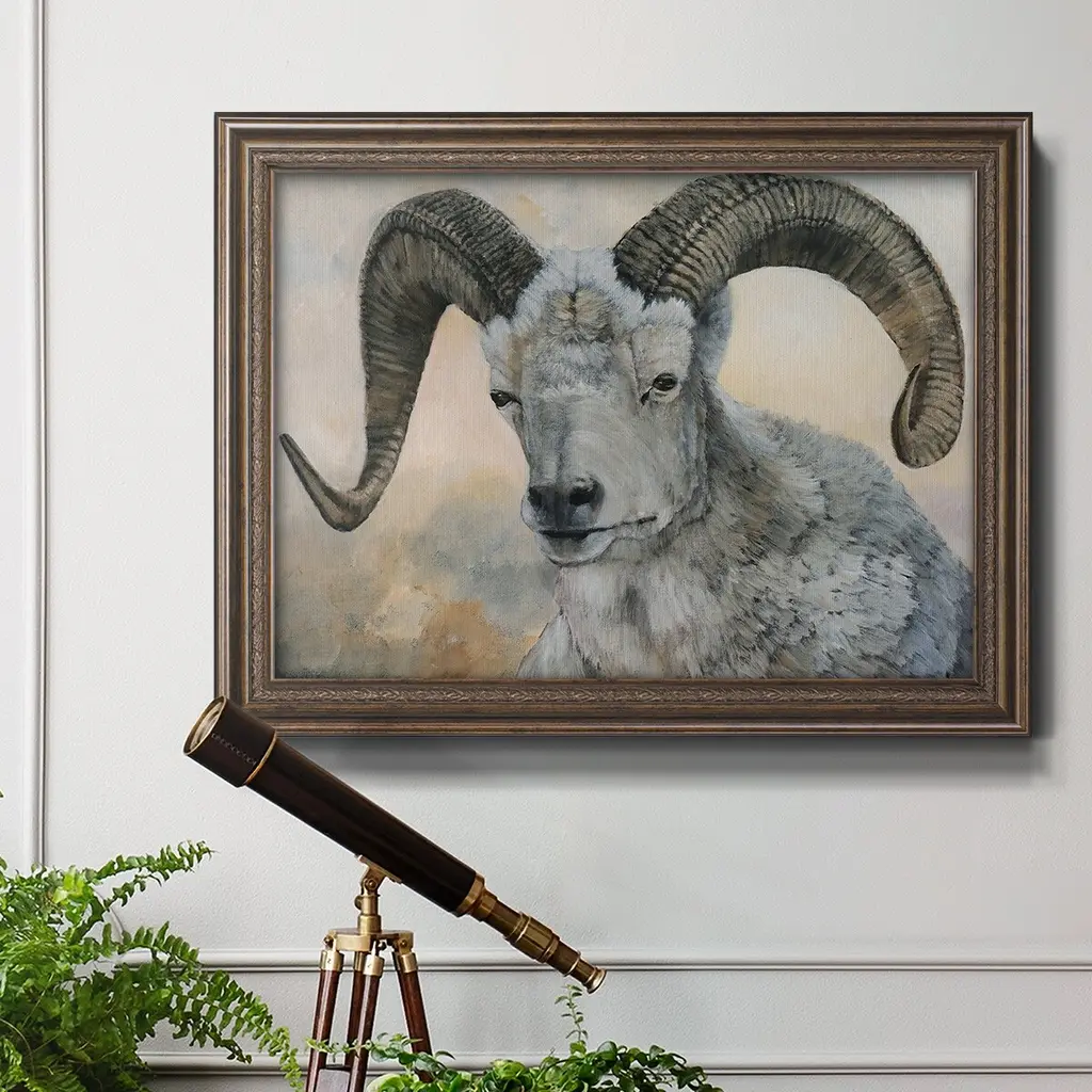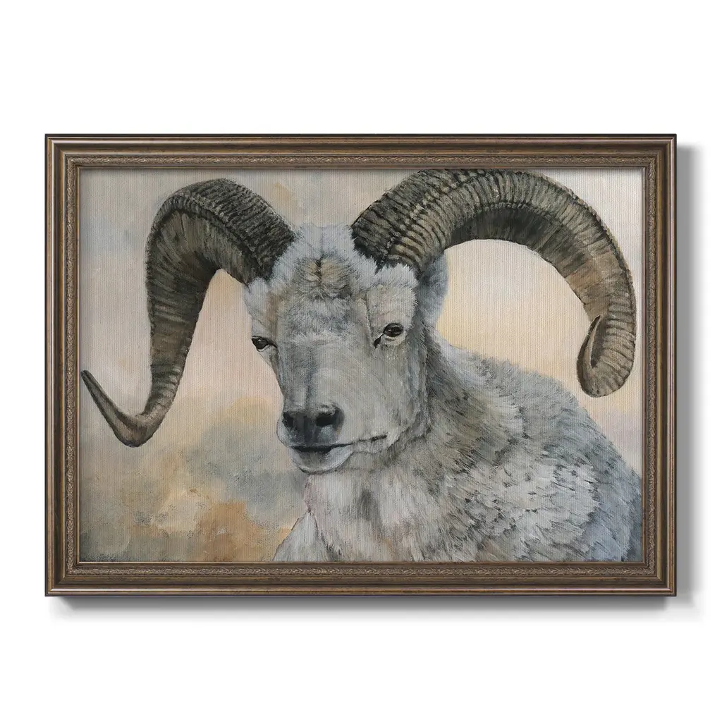 The Horns Have It II Premium Framed Canvas- Ready to Hang A Premium Framed Canvas created to last. Framed in distressed wood and available in an array of sizes and colors Featuring a beveled a solid wood stretcher bar, each piece comes ready to hand 3 SIZES AVAILABLE 16''X20'' - Overall Size 18'X27'' - Overall Size 24''x36'' - Overall Size Each piece is made to order. Each piece comes with hanging hardware. Made in the USA Ready to Hang Giclee Paper Print Acrylic Glass Beveled Matt Board