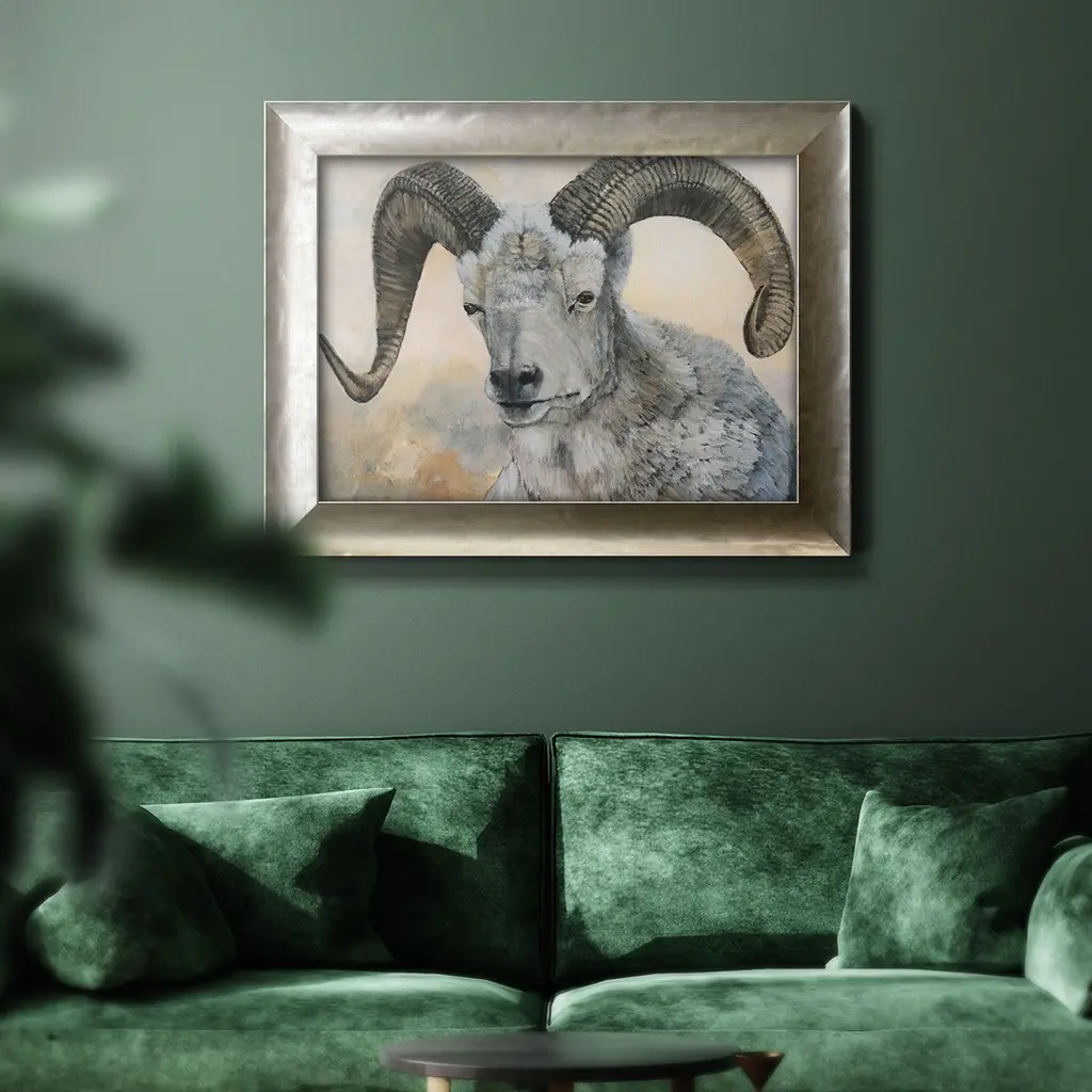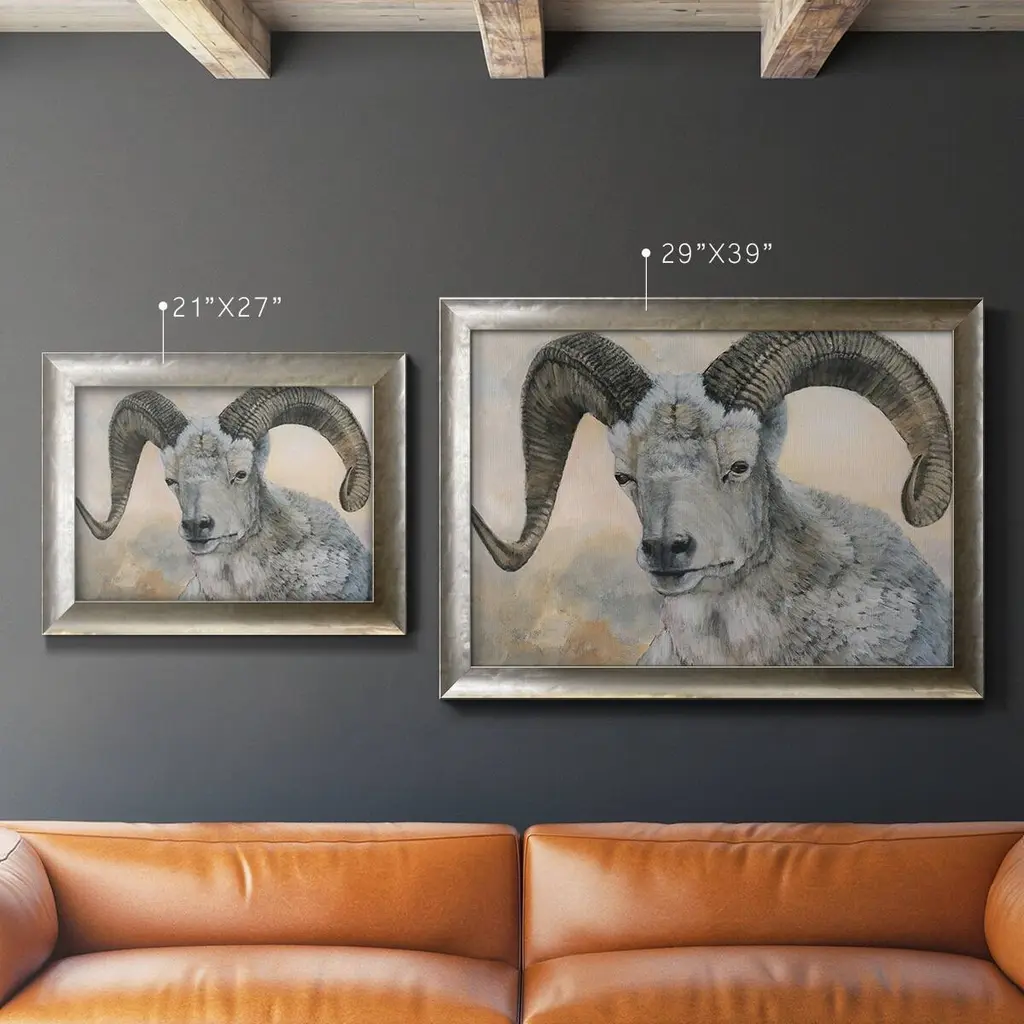 The Horns Have It II Premium Framed Canvas- Ready to Hang A Premium Framed Canvas created to last. Framed in distressed wood and available in an array of sizes and colors Featuring a beveled a solid wood stretcher bar, each piece comes ready to hand 3 SIZES AVAILABLE 16''X20'' - Overall Size 18'X27'' - Overall Size 24''x36'' - Overall Size Each piece is made to order. Each piece comes with hanging hardware. Made in the USA Ready to Hang Giclee Paper Print Acrylic Glass Beveled Matt Board