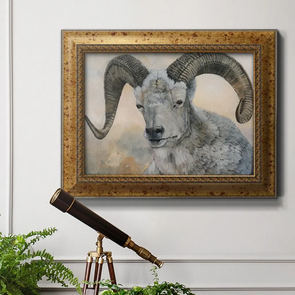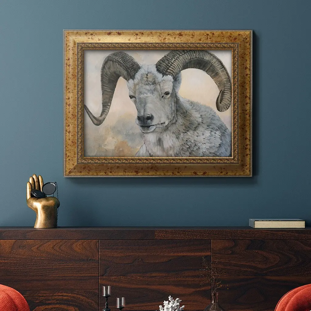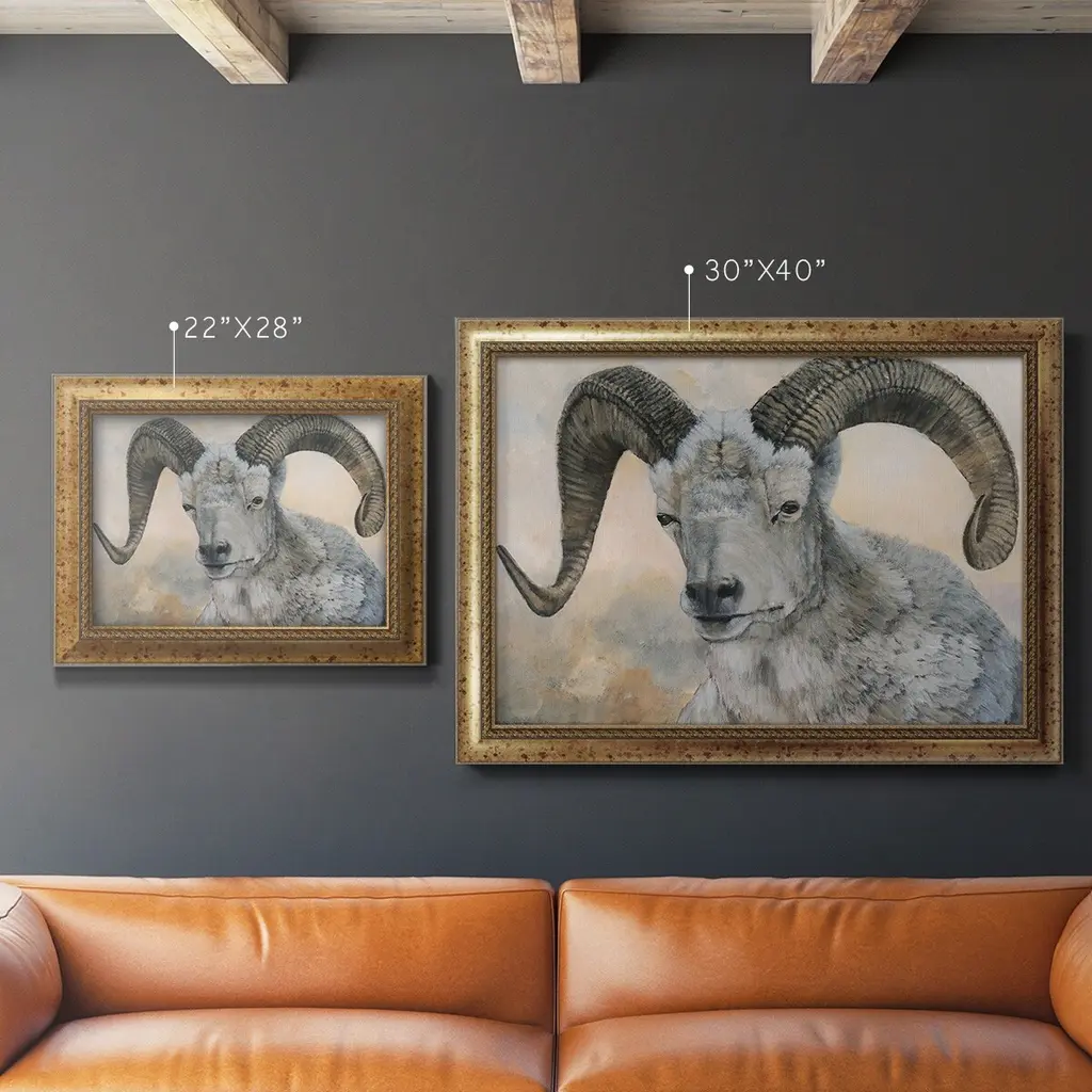 The Horns Have It II Premium Framed Canvas- Ready to Hang A Premium Framed Canvas created to last. Framed in distressed wood and available in an array of sizes and colors Featuring a beveled a solid wood stretcher bar, each piece comes ready to hand 3 SIZES AVAILABLE 16''X20'' - Overall Size 18'X27'' - Overall Size 24''x36'' - Overall Size Each piece is made to order. Each piece comes with hanging hardware. Made in the USA Ready to Hang Giclee Paper Print Acrylic Glass Beveled Matt Board