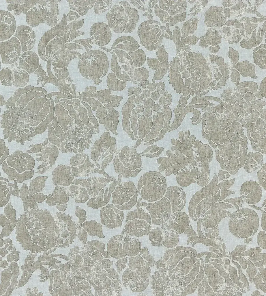 The House Of Scalamandré Elsa Linen Print Fabric, Silver On Skylight