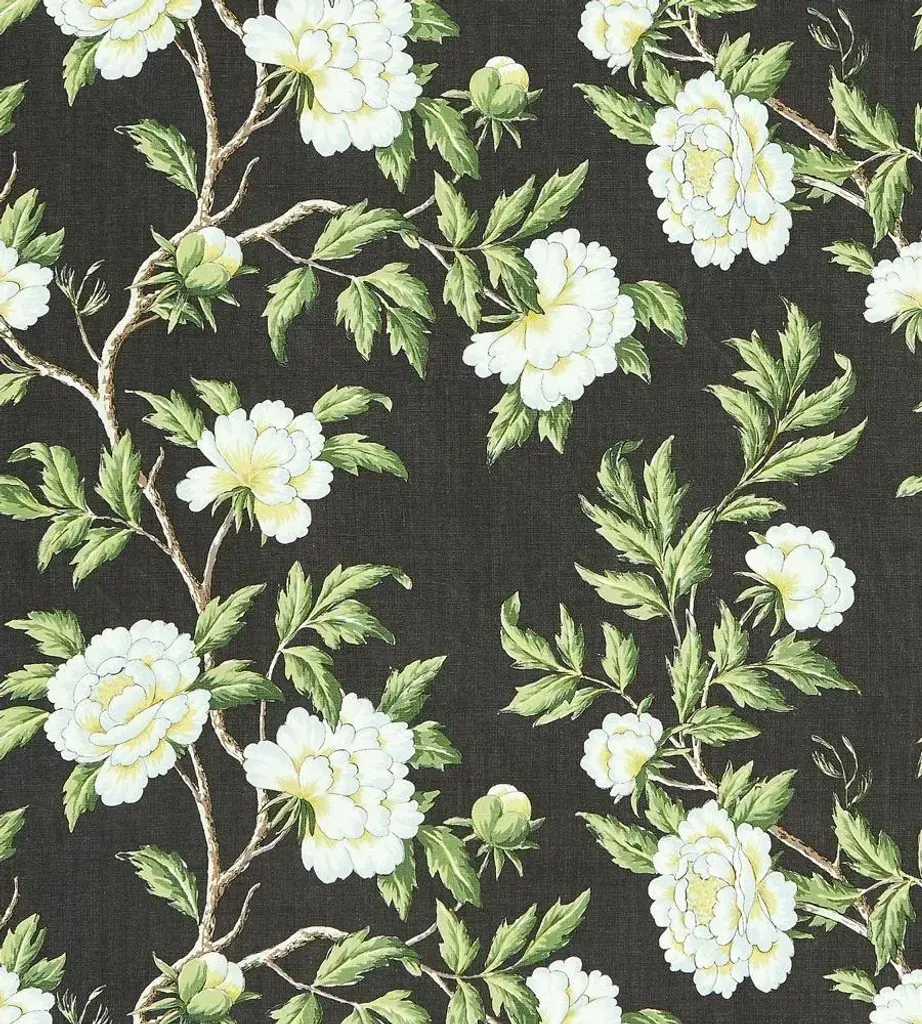 The House Of Scalamandré Peonia Linen Print Fabric, Onyx