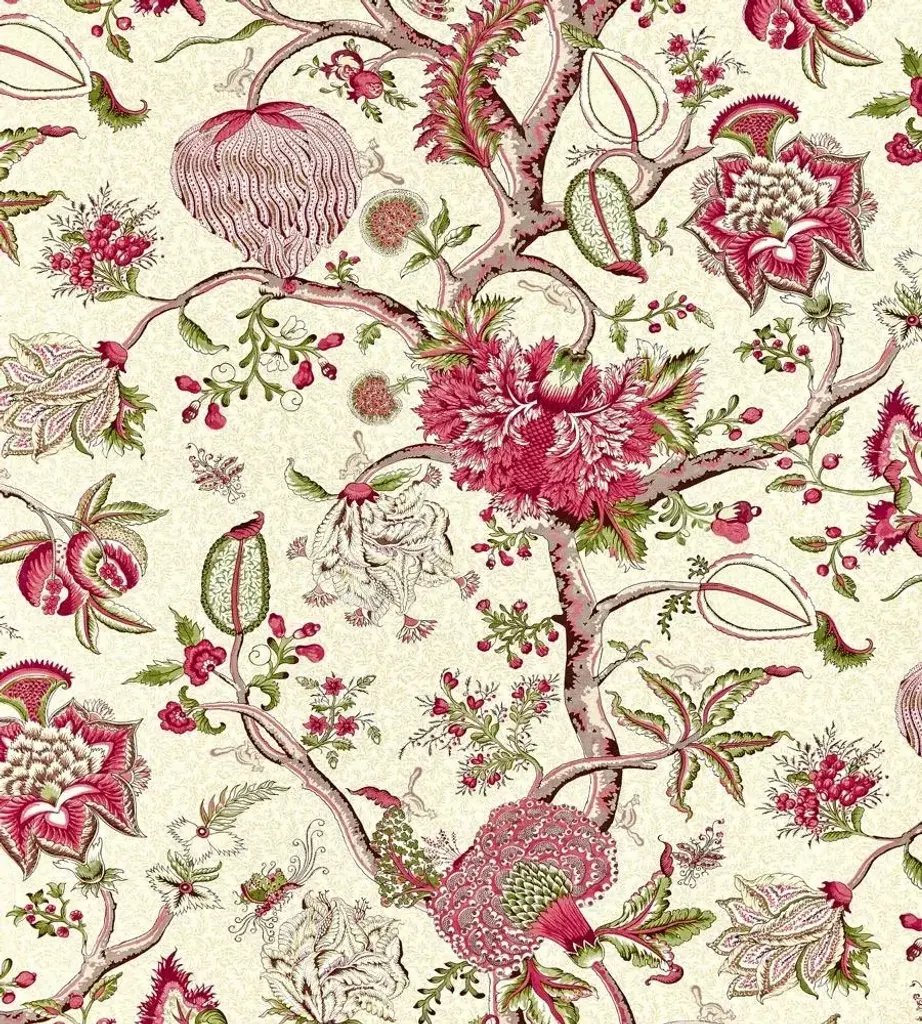 The House Of Scalamandré Pondicherry Cotton Print Fabric, Turkey Red On Lime