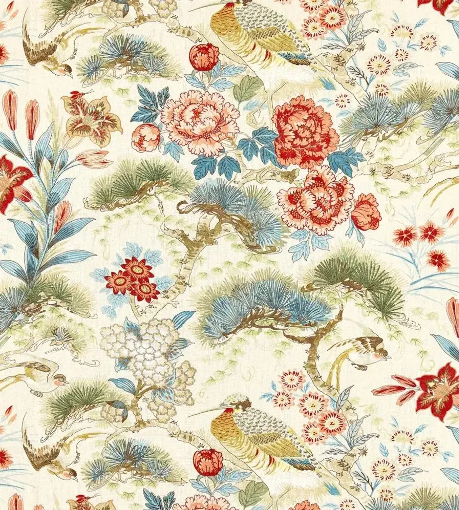 The House Of Scalamandré Shenyang Linen Print Fabric, Sandalwood