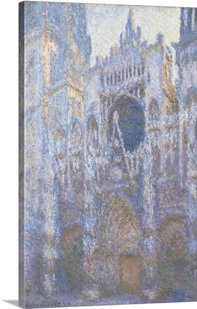 Soft focus oil painting showing the silhouette of a building through morning smog with the sun high in the sky.
