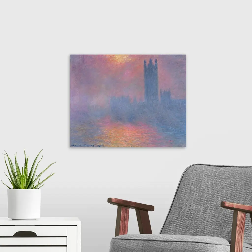 The Houses Of Parliament, London, With The Sun Breaking Through The Fog