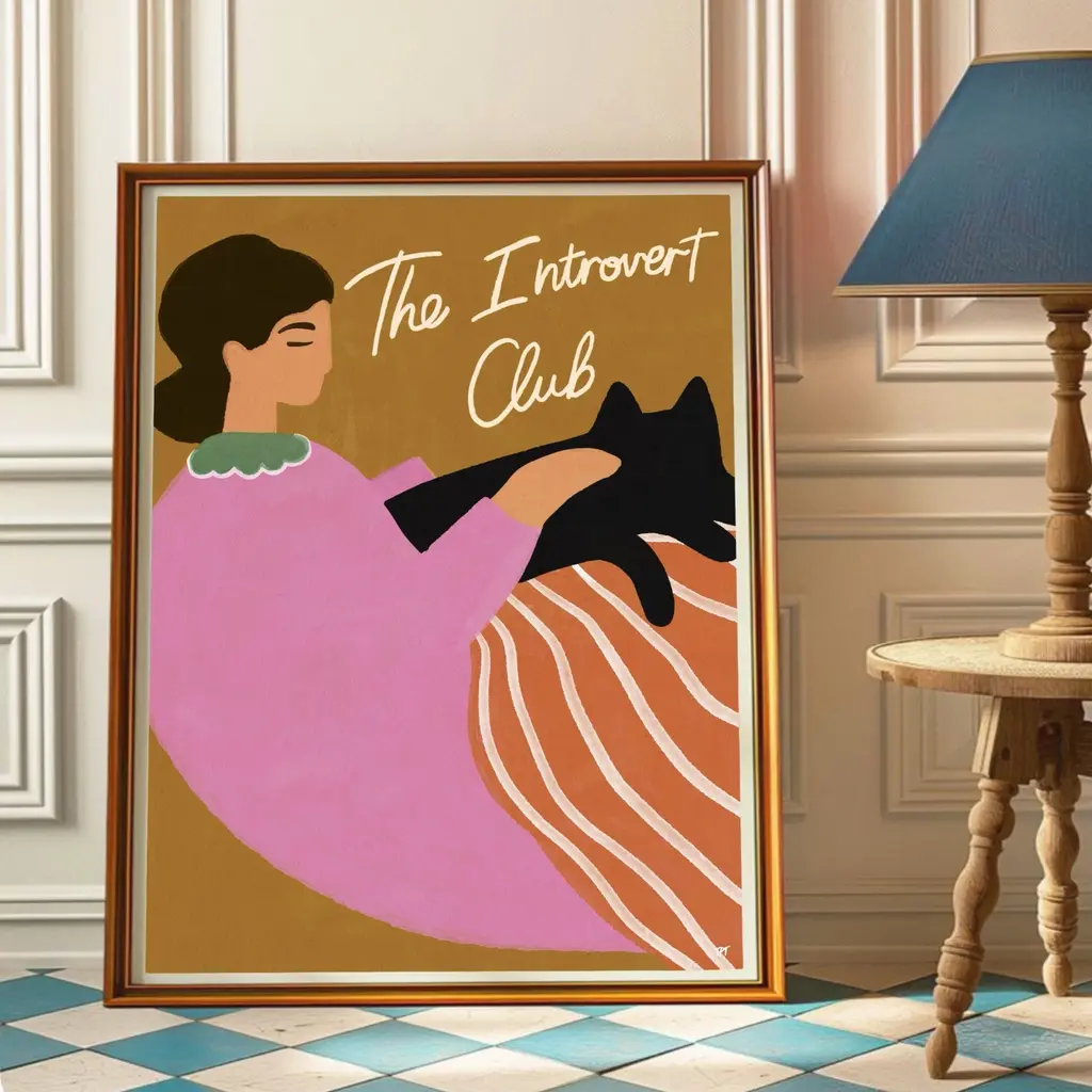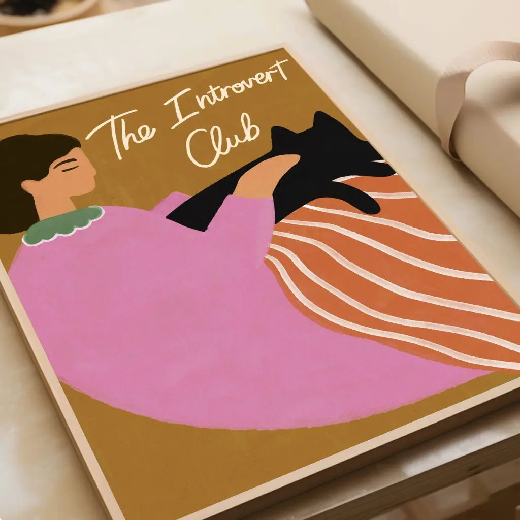 The Introvert Club - Cat Print - LargeIllustrated by Maria. This print is perfect for all cat lovers alike! Printed in the U.K.Printed on premium matte, fine art, archival paperPaper weight: 230 gsmSold without a frame.