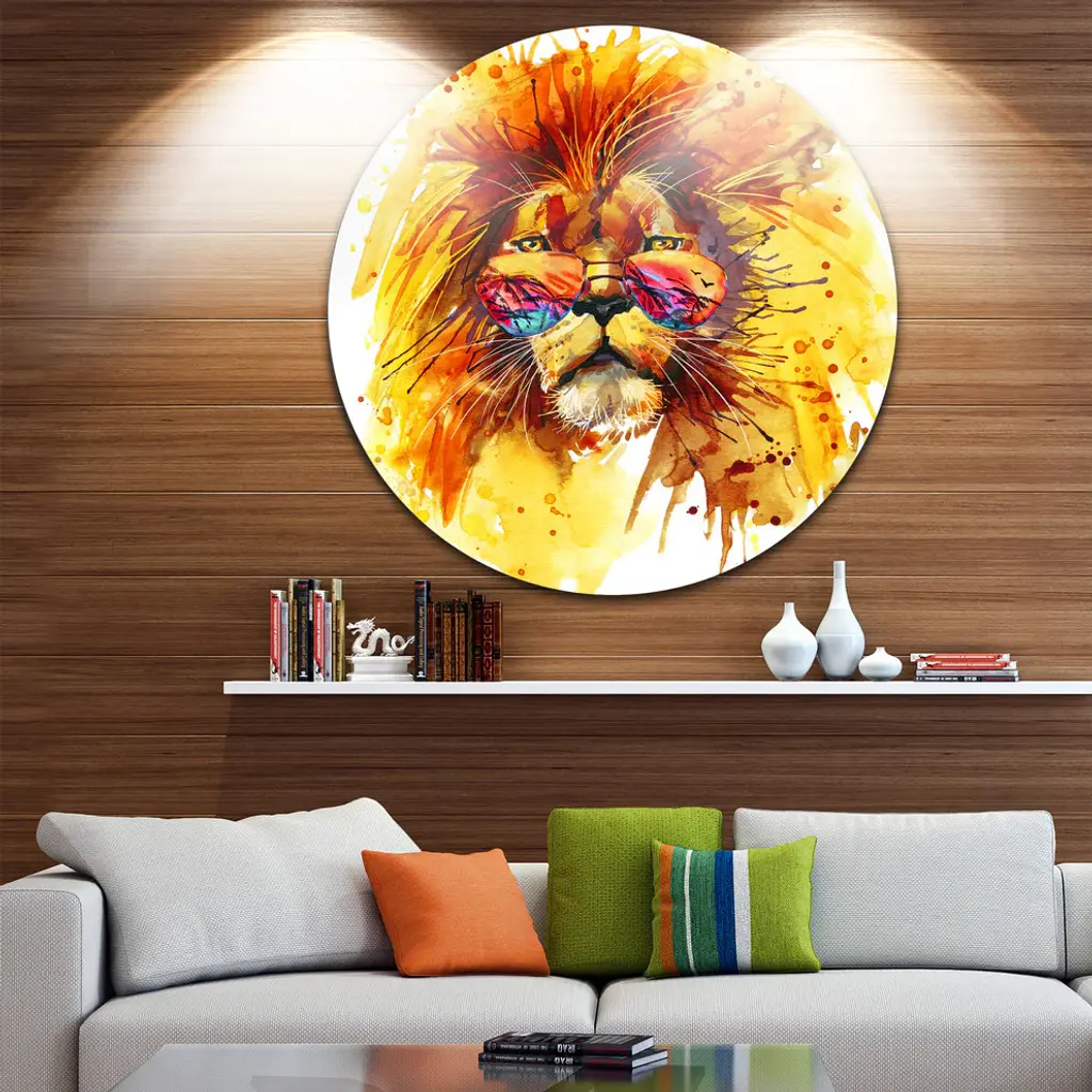 The King Watching, Animal Large Disc Metal Wall Art, 38"