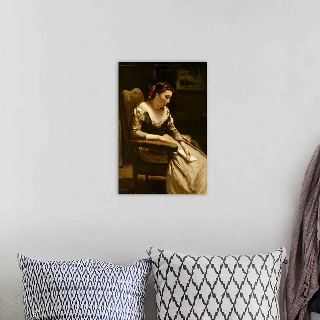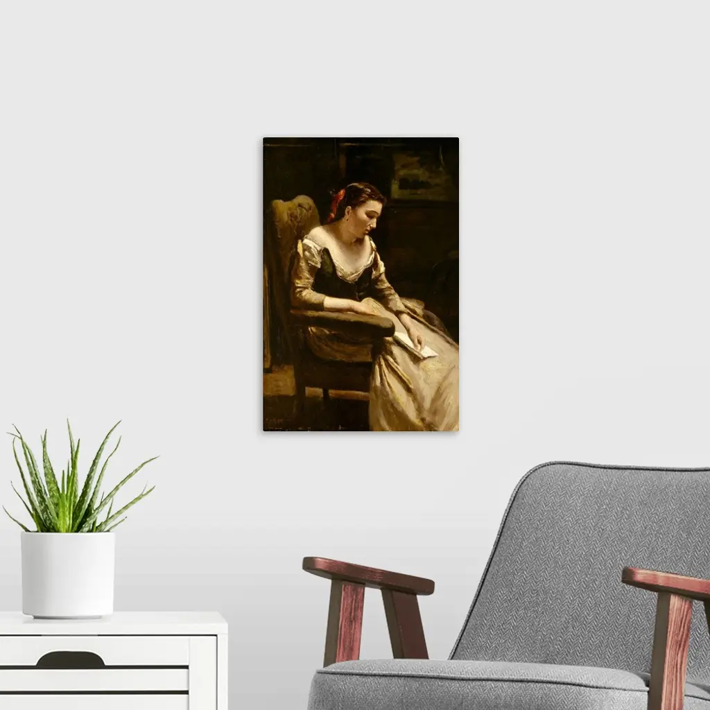 This work owes much of its character to the precedent of the eighteenth-century French painter Chardin. Yet the motif and handling also reflect an awareness of seventeenth-century Dutch painting, particularly Vermeer and de Hooch, whose works Corot could have seen during a trip to Holland in 1854. This picture was probably painted around the time Vermeer's art was enjoying a revival of interest.