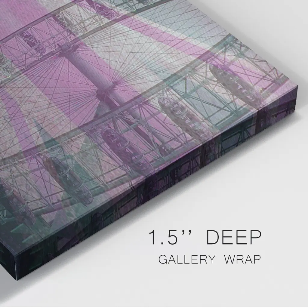 The London Eye Premium Gallery Wrapped Canvas - Ready to Hang A premium hand stretched gallery wrapped canvas print created to last. Featuring a beveled a solid wood stretcher bar, each piece comes ready to hand 6 SIZES AVAILABLE 8''X12'' - Overall Size 12''X18'' - Overall Size 18''X27'' - Overall Size 24''x36'' - Overall Size 32''x48'' - Overall Size 40''x60'' - Overall Size Each piece is made to order. Built to Last Each piece comes ready to hang Solid wood stretcher Fade and Water resistant Made domestically