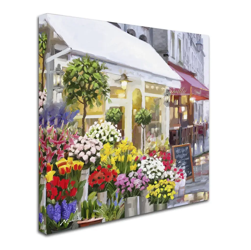 Artist: The Macneil StudioSubject: CityscapeStyle: Modern & ContemporaryProduct Type: Gallery-Wrapped Canvas ArtMade in USAThis ready to hang, gallery-wrapped art piece features a colorful flower shop in the city.Richard Macneil, a self taught artist, formed The Macneil Studio in 2009 with his wife Judi and their sons Daniel and Kyle. Born in Winchester, Macneil started his working life as an artist at Worcester Royal Porcelain and has always worked in the fields of sculpture, ceramics, and illustration, both in the UK and internationally. He spent many years living on the east coast of the USA, then returned to Worcestershire and freelanced as an artist and greeting card designer. Richard spends any spare time he has with his family walking in the beautiful British countryside and fishing.Giclee (jee-clay) is an advanced printmaking process for creating high quality fine art reproductions. The attainable excellence that Giclee printmaking affords makes the reproduction virtually indistinguishable from the original piece. The result is wide acceptance of Giclee by galleries, museums, and private collectors. Gallery wrap is a method of stretching an artist's canvas so that the canvas wraps around the sides and is secured a hidden, wooden frame. This method of stretching and preparing a canvas allows for a frameless presentation of the finished painting.