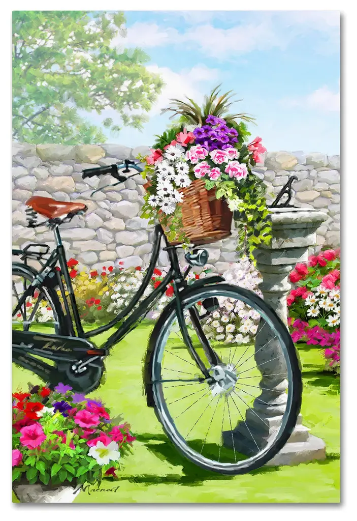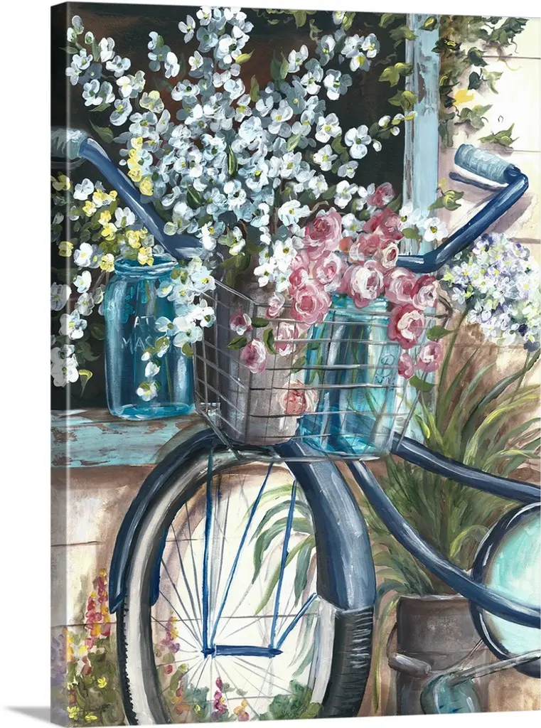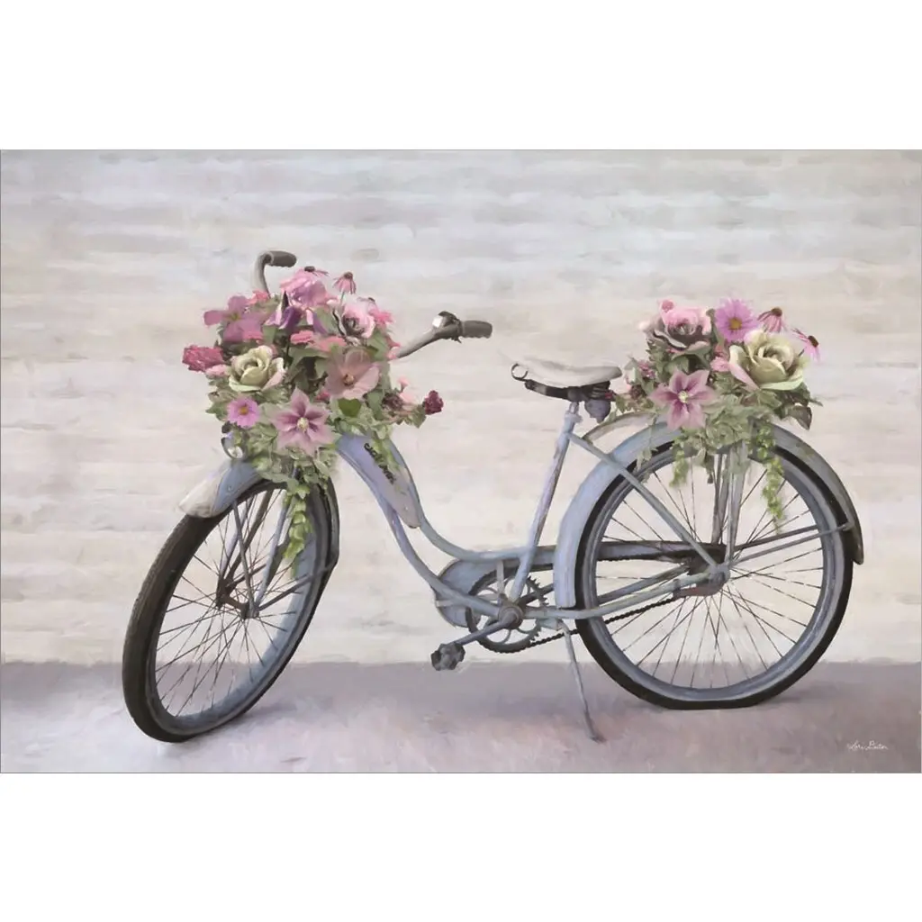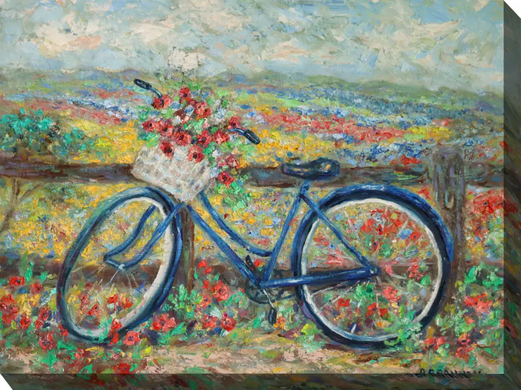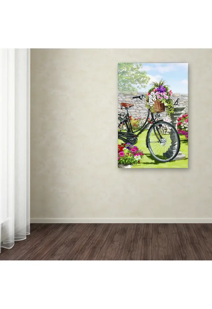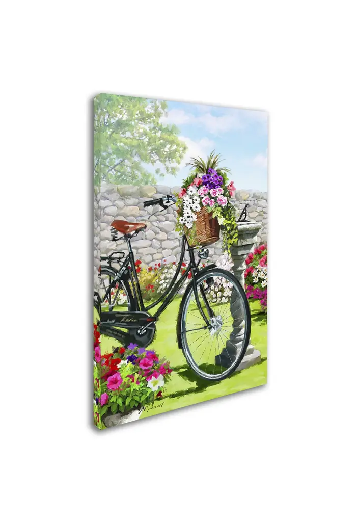 Artist: The Macneil StudioSubject: Still LifeStyle: Modern & ContemporaryProduct Type: Gallery-Wrapped Canvas ArtMade in USAThis ready to hang, gallery-wrapped art piece features an overflowing basket of flowers on a bicycle in a garden.Richard Macneil, a self taught artist, formed The Macneil Studio in 2009 with his wife Judi and their sons Daniel and Kyle. Born in Winchester, Macneil started his working life as an artist at Worcester Royal Porcelain and has always worked in the fields of sculpture, ceramics, and illustration, both in the UK and internationally. He spent many years living on the east coast of the USA, then returned to Worcestershire and freelanced as an artist and greeting card designer. Richard spends any spare time he has with his family walking in the beautiful British countryside and fishing.Giclee (jee-clay) is an advanced printmaking process for creating high quality fine art reproductions. The attainable excellence that Giclee printmaking affords makes the reproduction virtually indistinguishable from the original piece. The result is wide acceptance of Giclee by galleries, museums, and private collectors. Gallery wrap is a method of stretching an artist's canvas so that the canvas wraps around the sides and is secured a hidden, wooden frame. This method of stretching and preparing a canvas allows for a frameless presentation of the finished painting.
